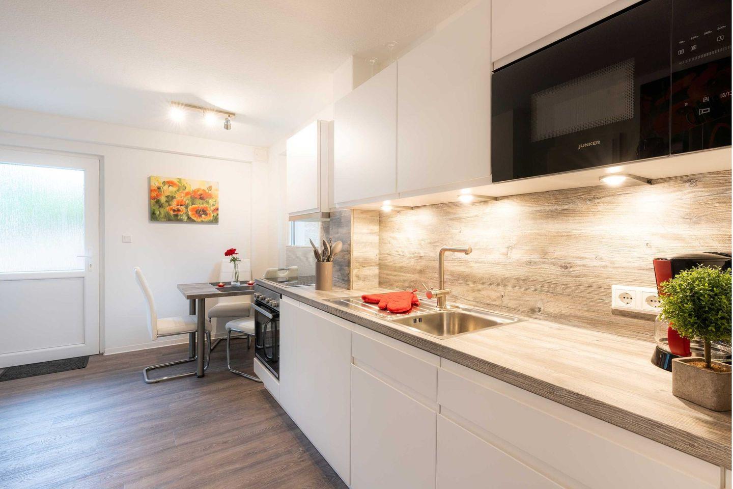 Das Ferienhaus verfügt über zwei Schlafzimmer, die zum Entspannen und Erholen einladen. Jedes Zimmer ist liebevoll eingerichtet und bietet ausreichend Platz für die Gäste. Die Küche verfügt über moderne Annehmlichkeiten wie einen Cerankochfeld, einen Kühlschrank mit Gefrierfach, eine Mikrowelle, einen Geschirrspüler sowie eine Kaffeemaschine – alles, was Sie für einen angenehmen Aufenthalt benötigen.