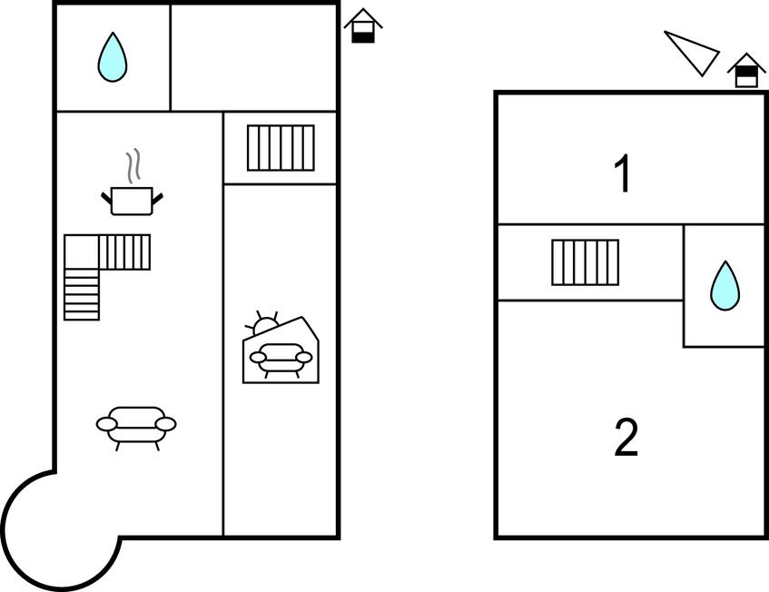Til første sal fører en stejl trappe. Her er der soveværelse med dobbeltseng, og soveværelse med dobbelt udtræksseng og etageseng.