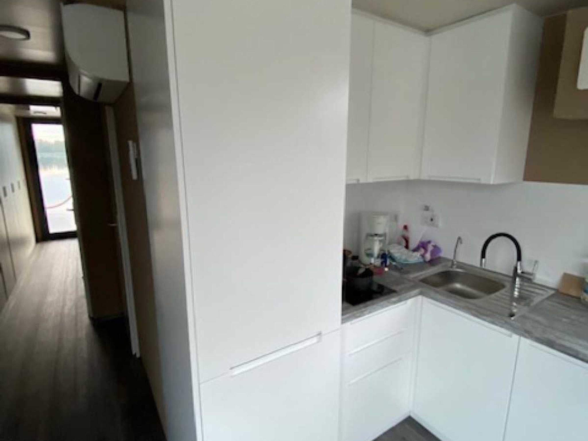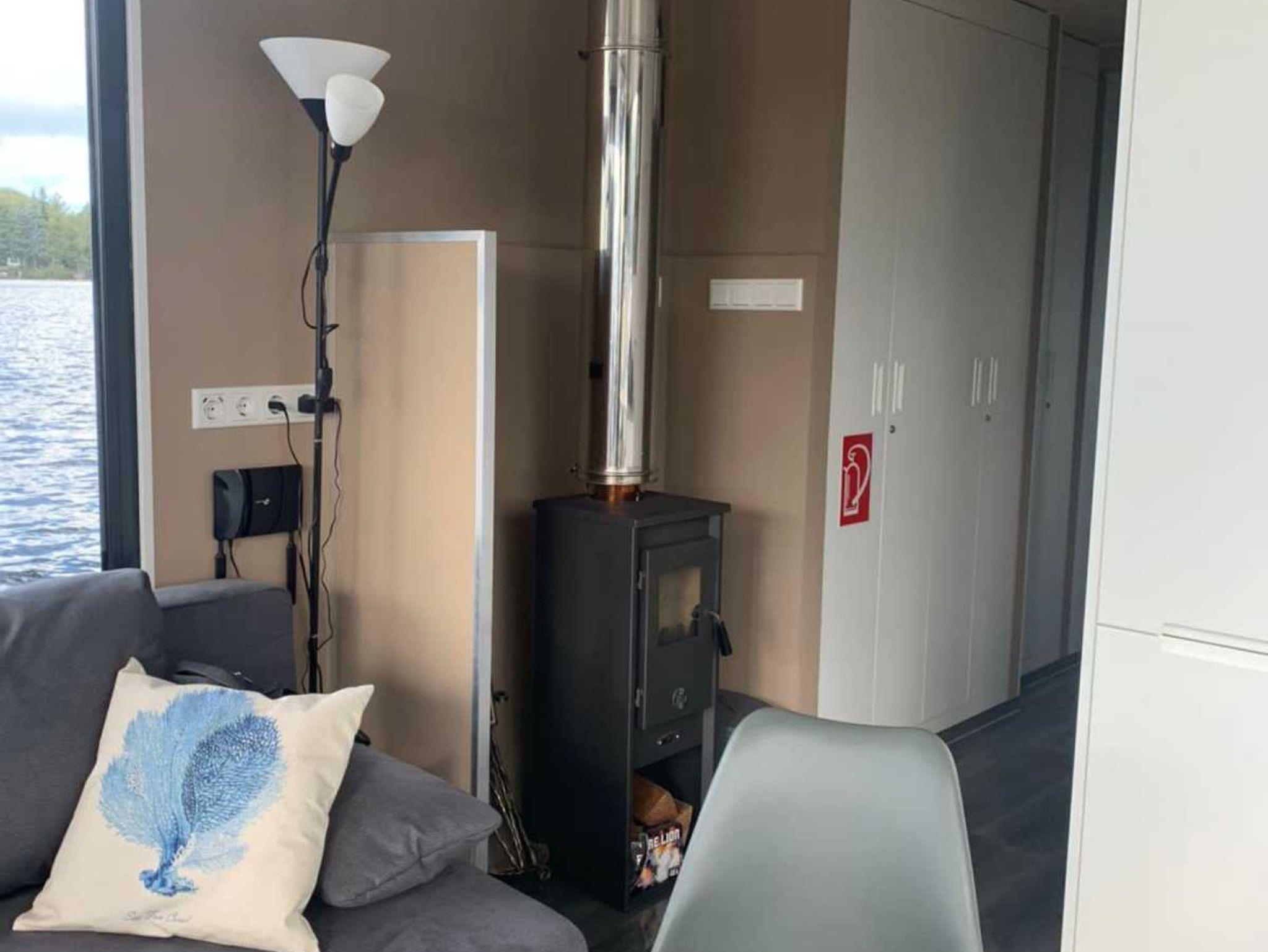 Es handelt sich um ein Hausboot vom Typ Woodstream 12,5 mit den Abmessungen 12,5 Meter x 3,5 Meter und 0,50 Meter Tiefgang. Ausgestattet mit einem 50 PS Motor mit Bug- und Heckstrahlruder und Bugterrasse mit Fahrerstand,: einer Oberterasse mit Lounge-Möbeln, 1 großem Wohnraum mit Couchecke (Schlafcouch) und Kamin, kompletter Küche und Essplatz für 4 Personen, 2 Schlafräume für je 2 Personen und einem großzügigem Bad mit Dusche und WC.