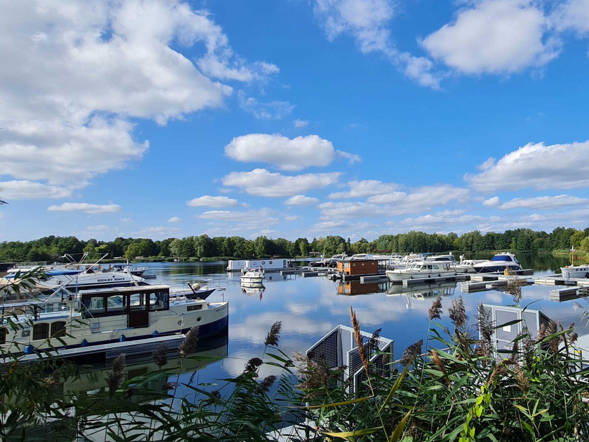 Unsere komfortablen und führerscheinfreien Hausboote bis 4 Personen stehen an der Anlegestelle Senzig am Kimnicksee in Königs Wusterhausen. Sie betreten das Boot über die Bugterrasse und stehen im großen Wohnbereich mit Couchecke und Kamin, sowie kompletter Küchenzeile, 2 Schlafräume, 1 Bad mit Dusche und WC, sowie eine Bug- und Oberterrasse zum Chillen, Sonnen und Grillen machen das Hausboot komplett.