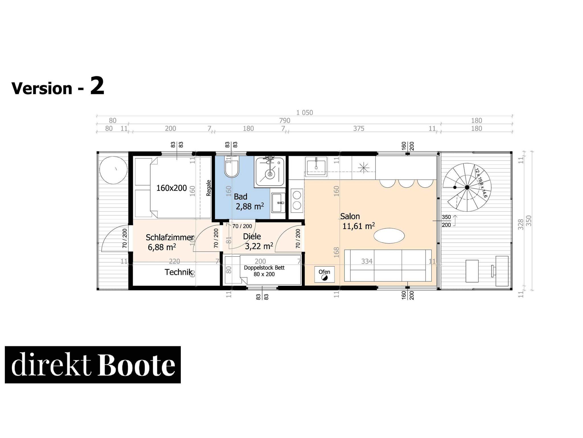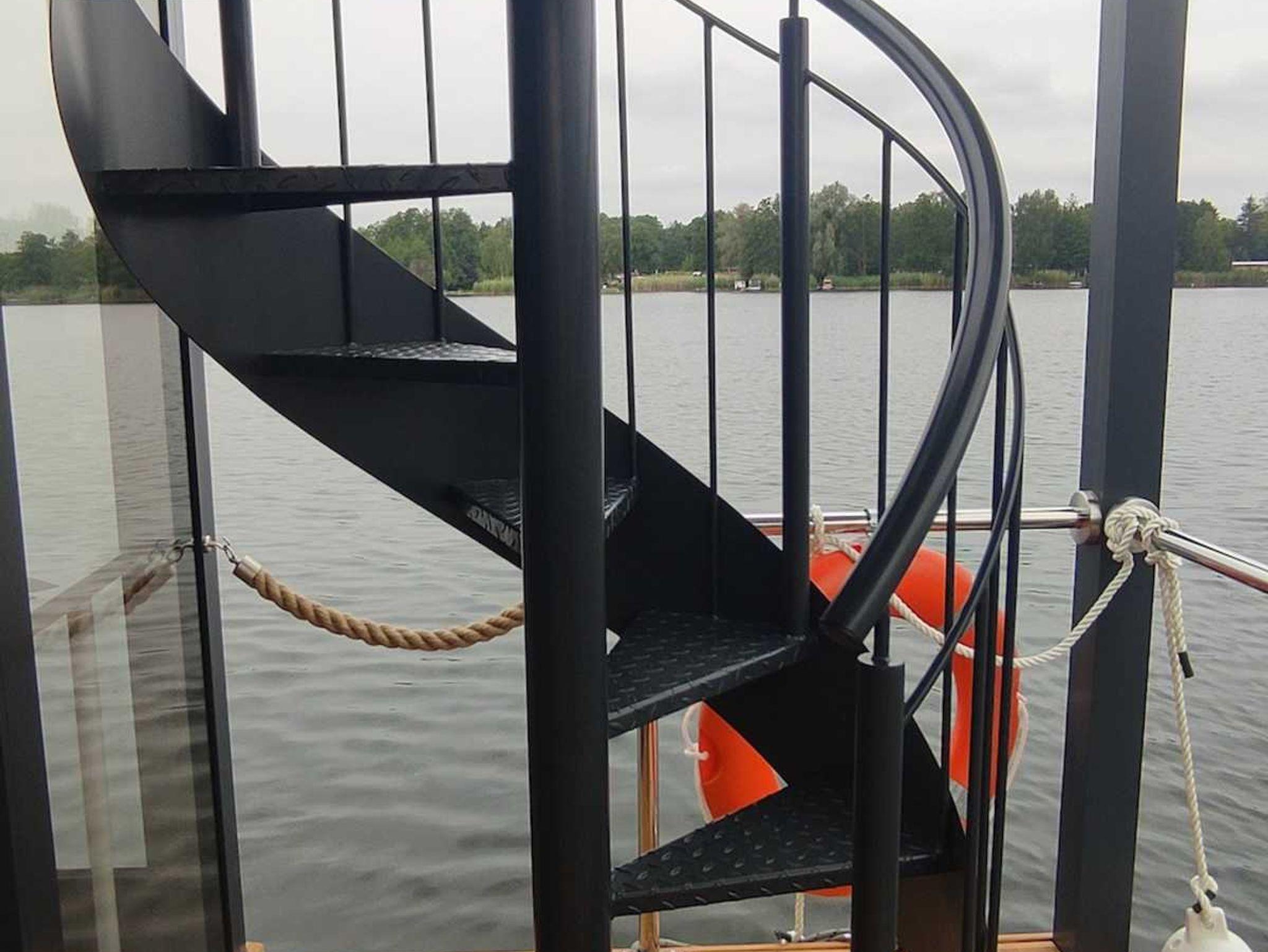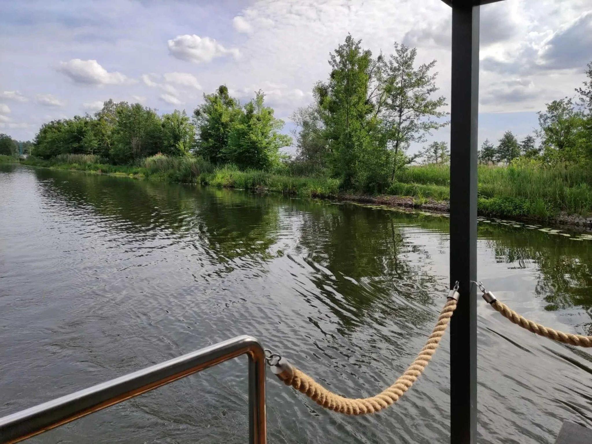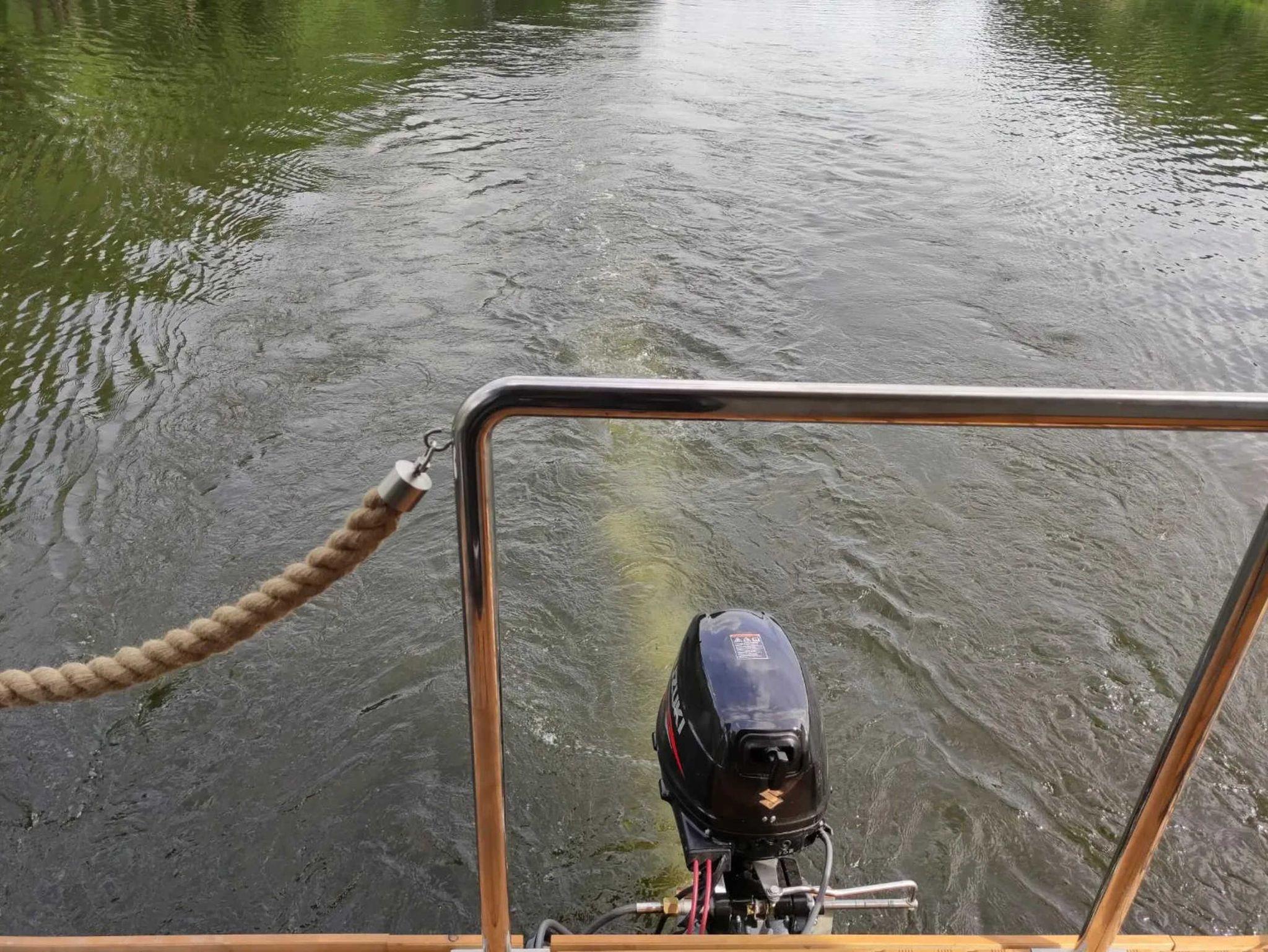 Es handelt sich um ein Hausboot vom Typ Woodstream 10,5 mit den Abmessungen 10,5 Meter x 3,5 Meter und 0,50 Meter Tiefgang. Ausgestattet mit einem 15 PS Motor mit Bugstrahlruder und Bugterrasse mit Fahrerstand,: einer Oberterasse mit Lounge-Möbeln, 1 großem Wohnraum mit Couchecke (Schlafcouch) und Kamin, kompletter Küche und Essplatz für 4 Personen, 2 Schlafräume für je 2 Personen, sowie einem großzügigem Bad mit Dusche und WC.