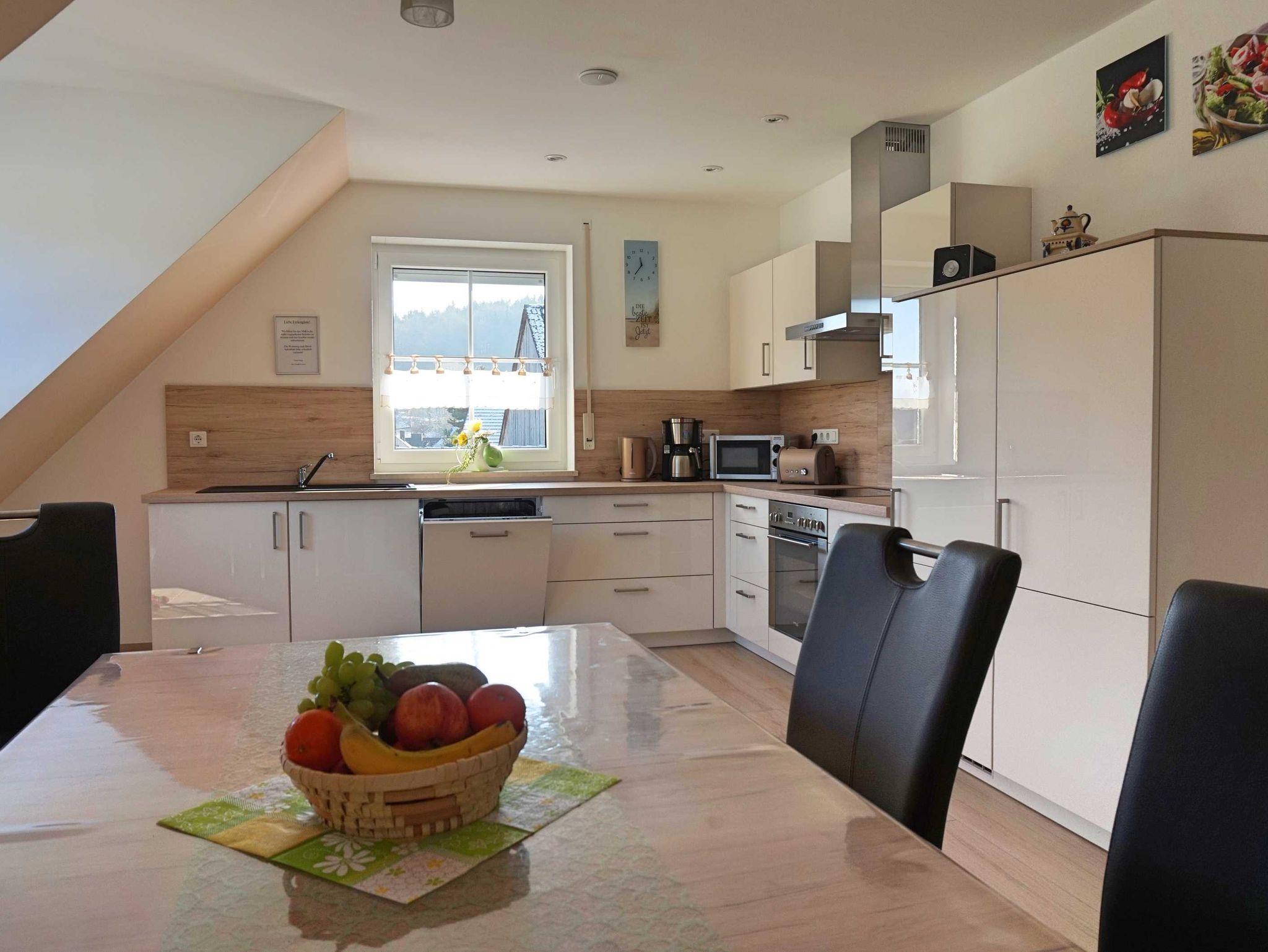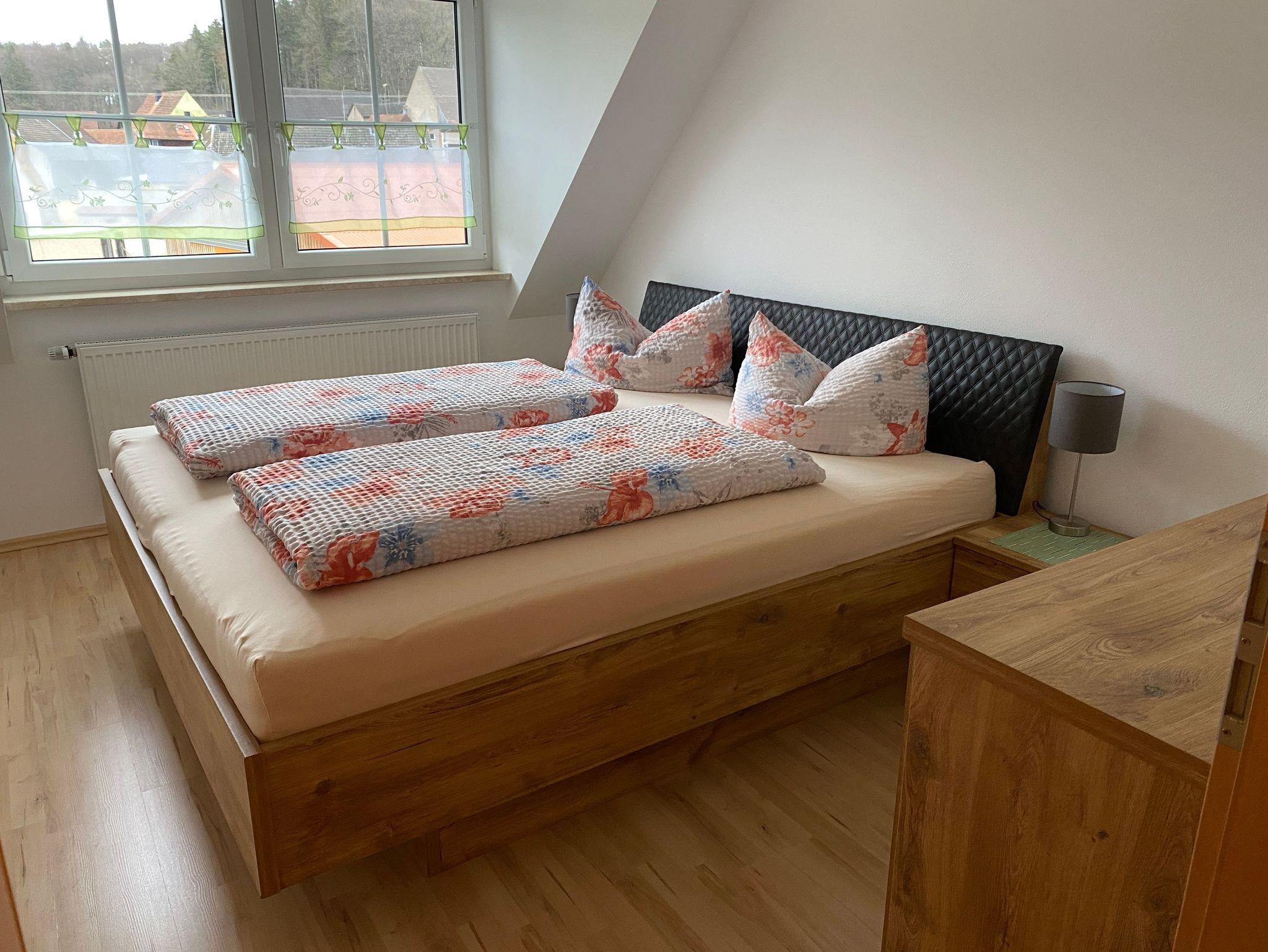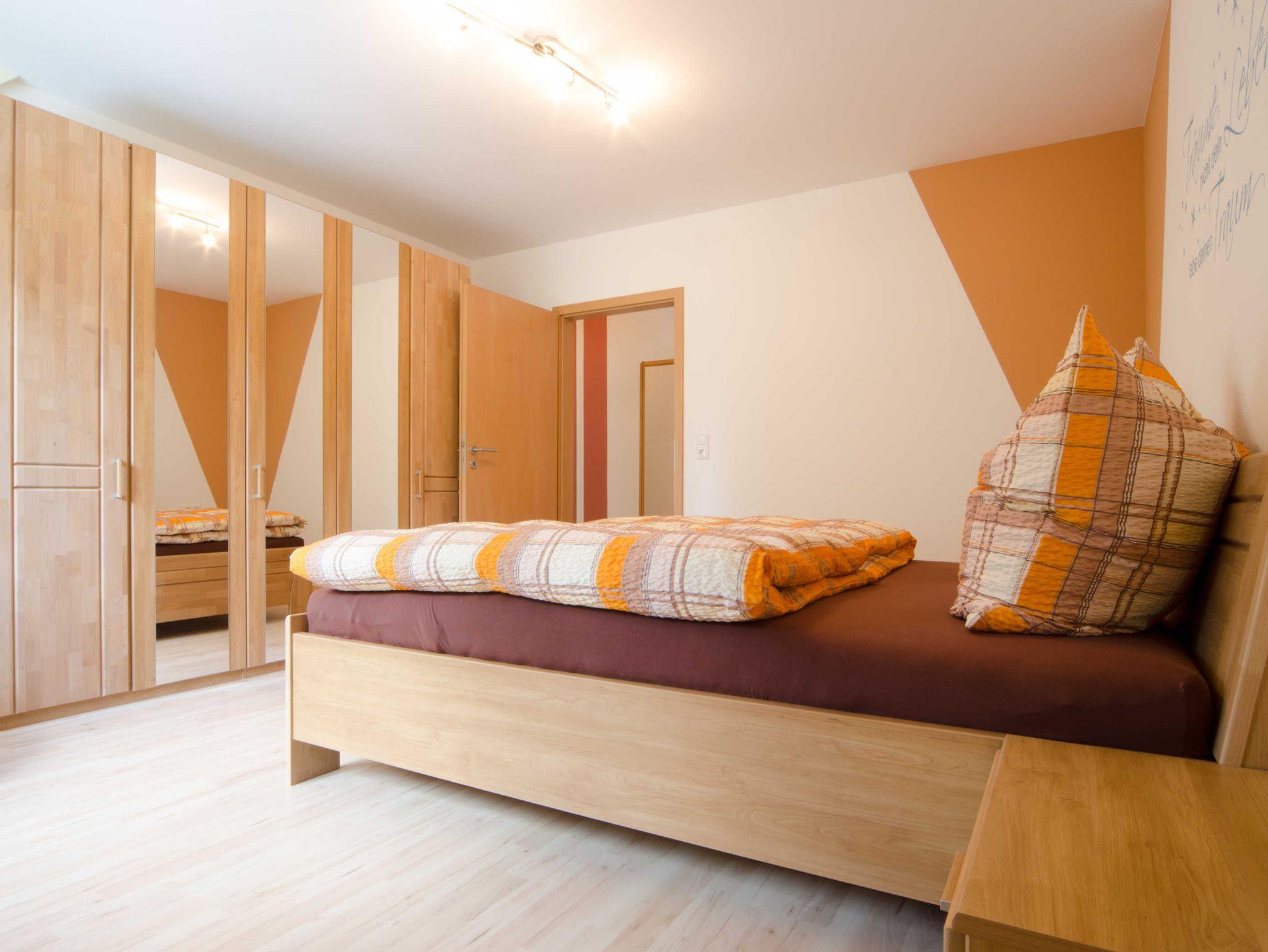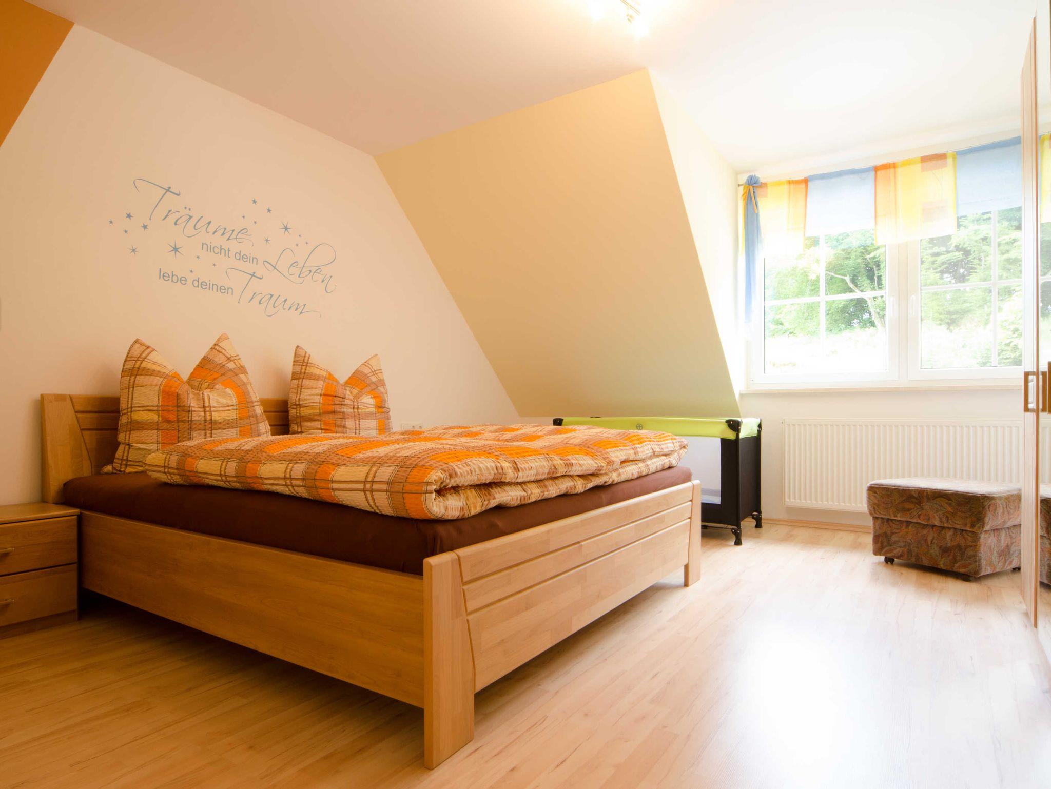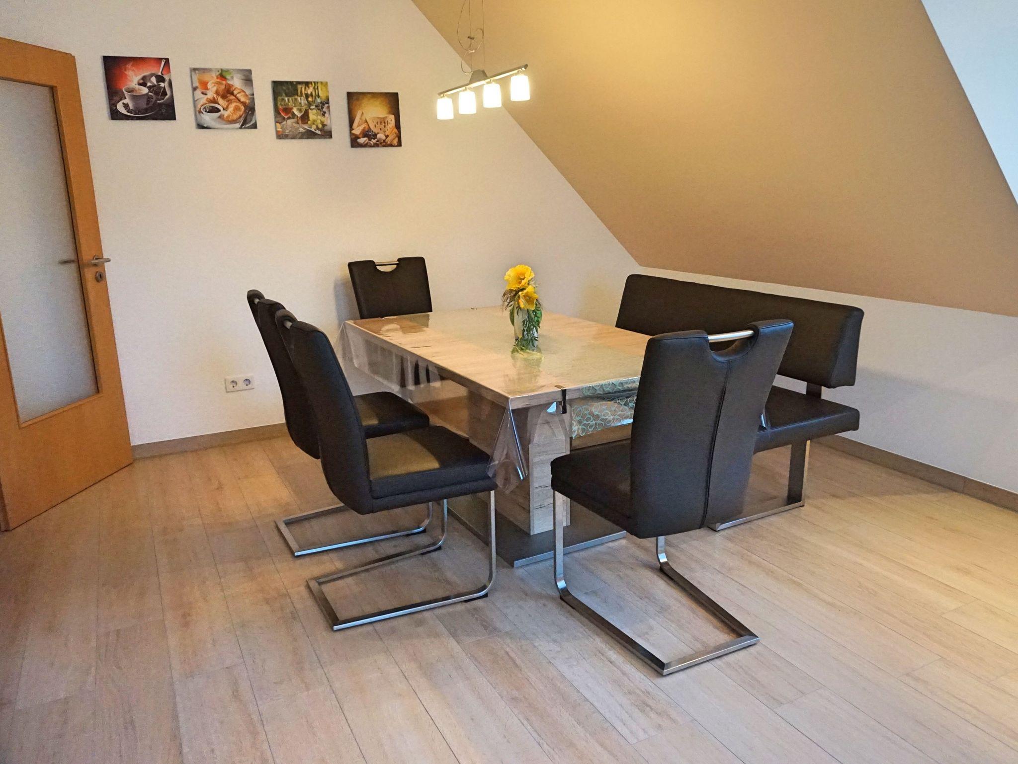 Wir bieten Ihnen eine neu komfortable Ferienwohnung für 2 bis 5 Personen (alternativ bis 7 Personen nutzbar). Unsere Ferienwohnung befindet sich im Dachgeschoss. Auf ca.100 qm Wohnfläche lässt es sich wohlfühlen mit einem Doppelschlafzimmer, zwei Kinderzimmer (ein Kinderzimmer kann auch als Doppelzimmer genutzt werden), Küche, Bad, Wohnzimmer mit Schlafcouch und Balkon.