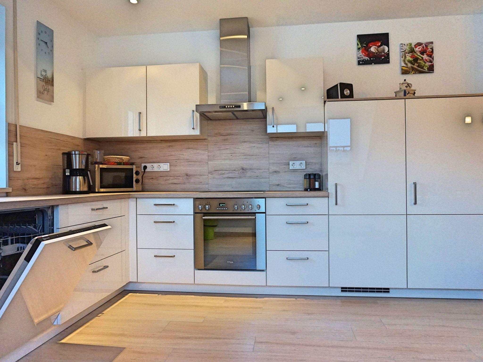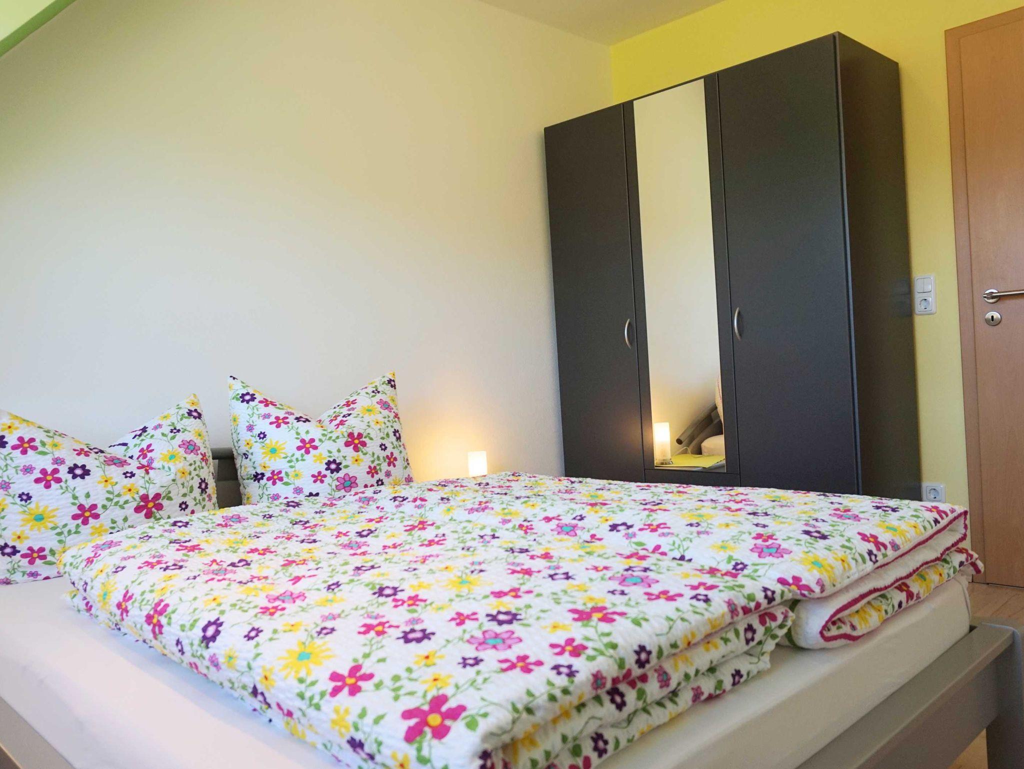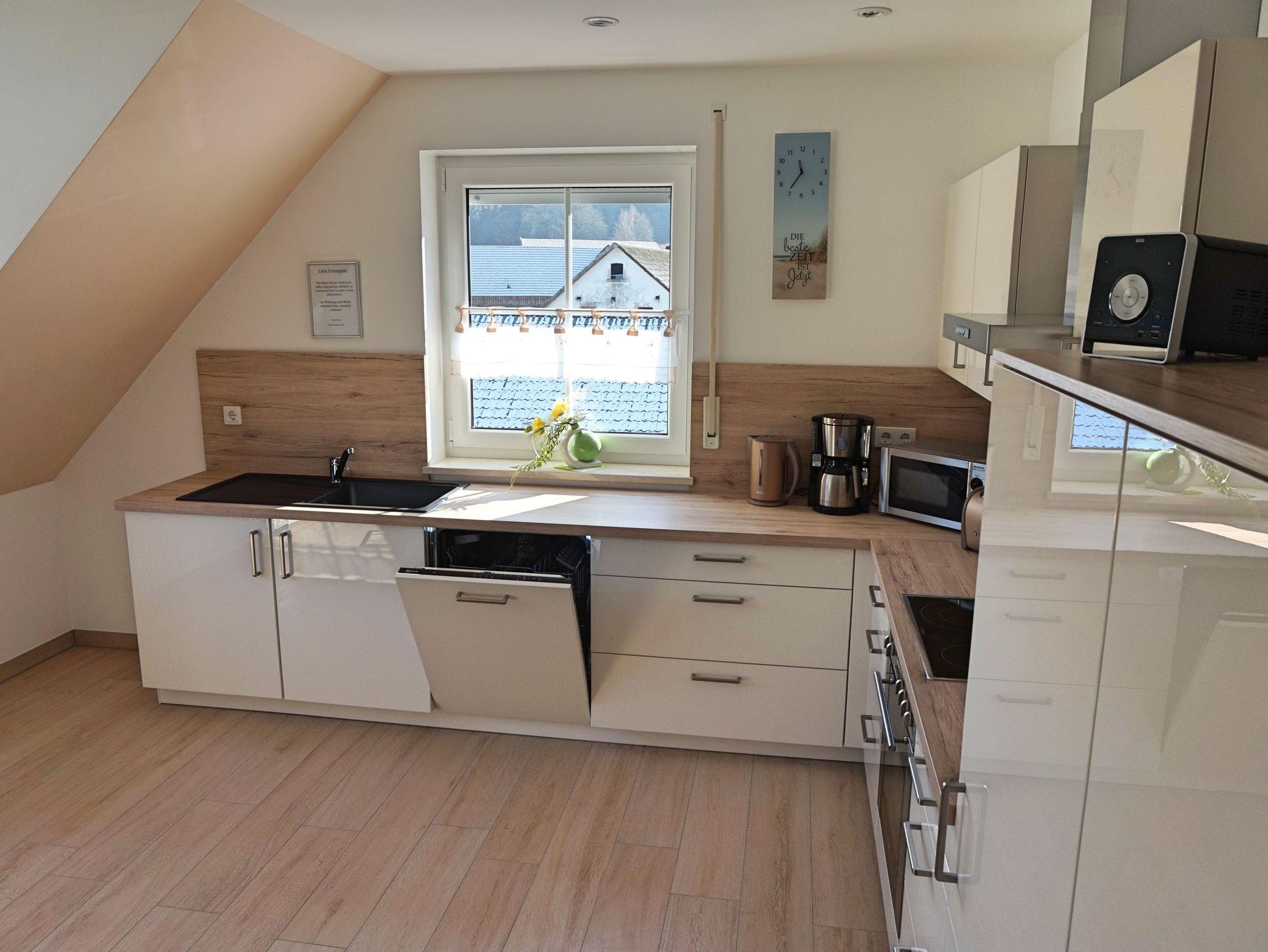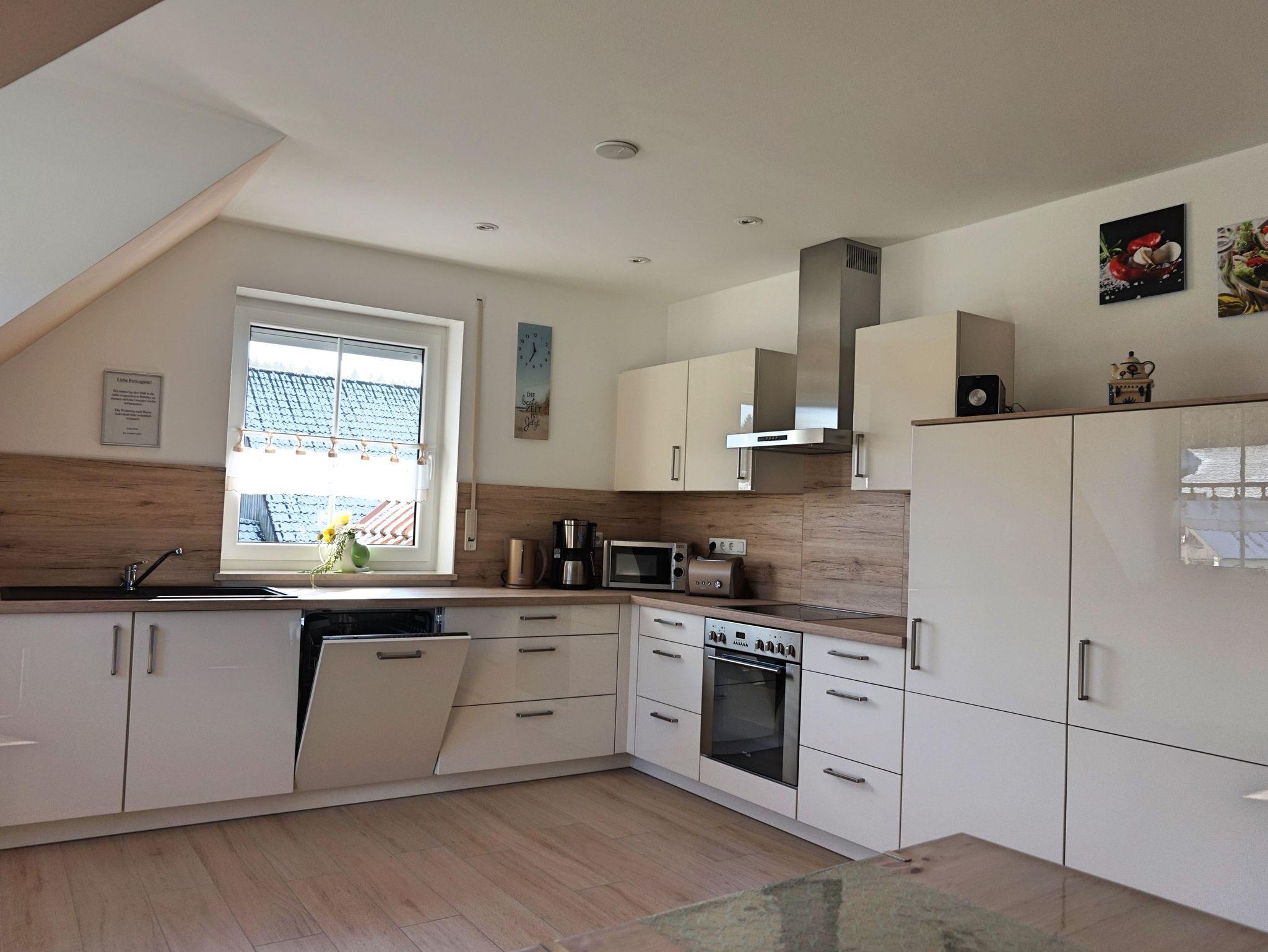 Wir bieten Ihnen eine neu komfortable Ferienwohnung für 2 bis 5 Personen (alternativ bis 7 Personen nutzbar). Unsere Ferienwohnung befindet sich im Dachgeschoss. Auf ca.100 qm Wohnfläche lässt es sich wohlfühlen mit einem Doppelschlafzimmer, zwei Kinderzimmer (ein Kinderzimmer kann auch als Doppelzimmer genutzt werden), Küche, Bad, Wohnzimmer mit Schlafcouch und Balkon.