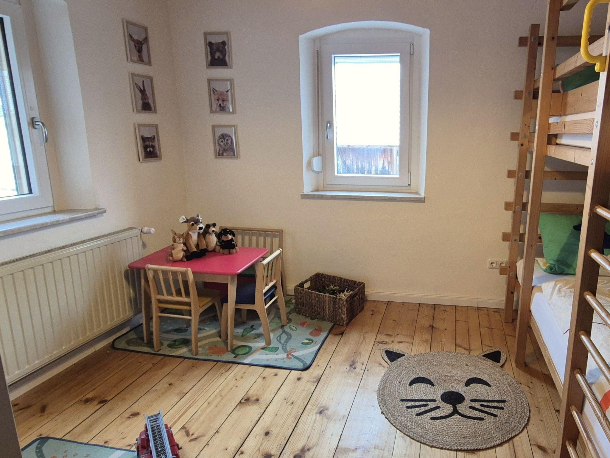 Wer dem Charme eines alten Bauernhofes mit knarzenden Holzböden und gemütlichen Holzofen etwas abgewinnen kann, ist hier an der richtigen Adresse. Die Zimmer wurden 2024 mit viel Liebe renoviert. Das Erdgeschoss mit einer großen Wohnküche und großem Wohn- und Esszimmer bietet viel Platz für alle Bewohner.