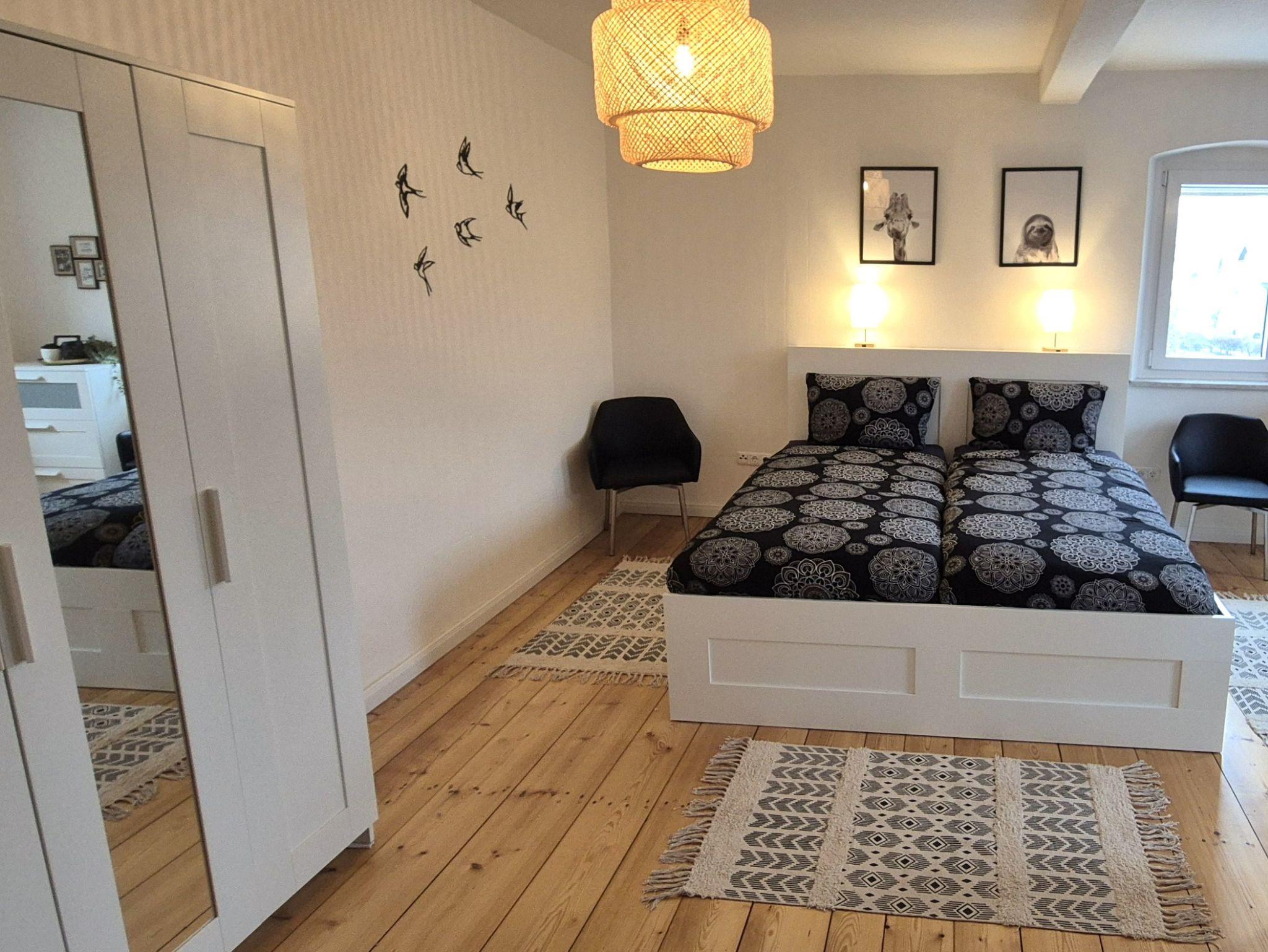 Das großzügigste Schlafzimmer verfügt über ein Doppelbett. Sowie ein Tagesbett, dass auf 2x80cm Breite ausgezogen werden kann.