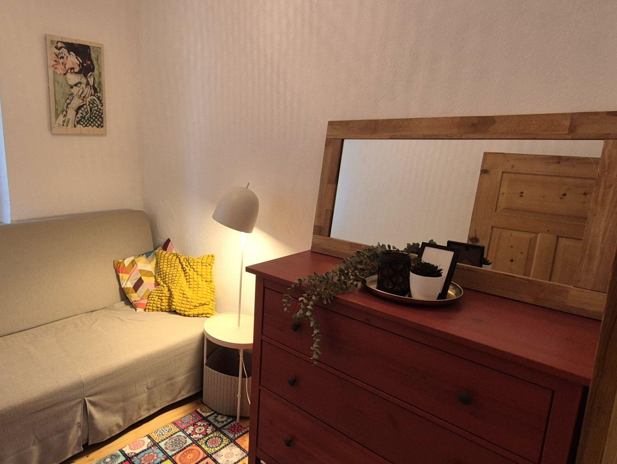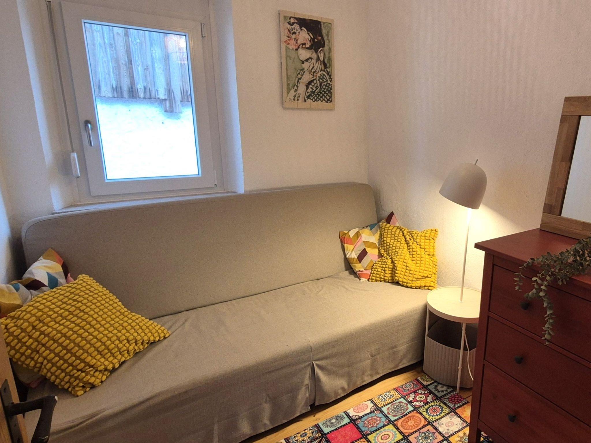 Ein kleines Zimmer, welches wahlweise als Rückzugsort zum Lesen genutzt werden kann, oder aber als ausgezogene Schlafcouch mit 1,60 Breite bis zu 2 Personen Platz zum schlafen bietet.