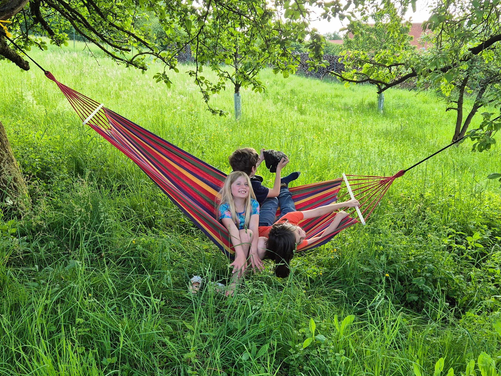 Der Garten bietet einen gemütlichen Sitzplatz zum Verweilen, im angrenzenden ehemaligen Hühnergarten finden Kinder viel Platz zum toben. Direkt am Grundstück läuft die Aufseß vorbei.