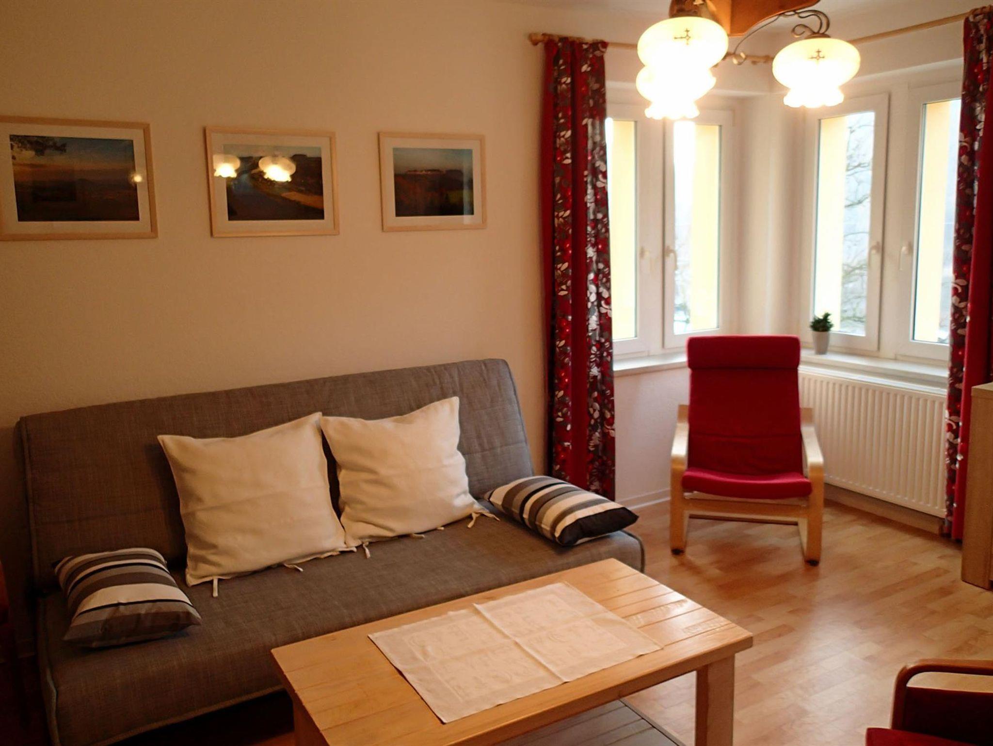 Herzlich willkommen in unserer modern eingerichteten und zentral gelegenen Ferienwohnung mit Blick auf die Festung Königstein und den Lilienstein. Die Haltestellen der öffentlichen Verkehrsmittel sind zu Fuß innerhalb von 10 Minuten erreichbar. In der Wohnung ist genügend Platz für 4 Personen, eine Aufbettung auf 6 Personen ist ohne Probleme möglich.