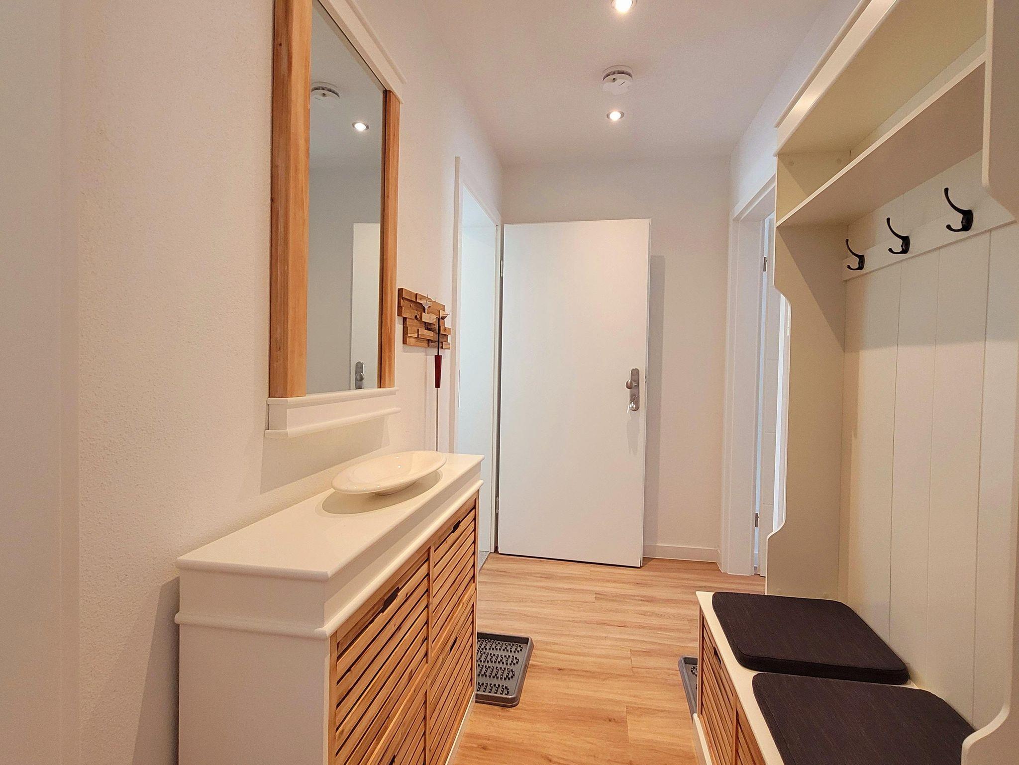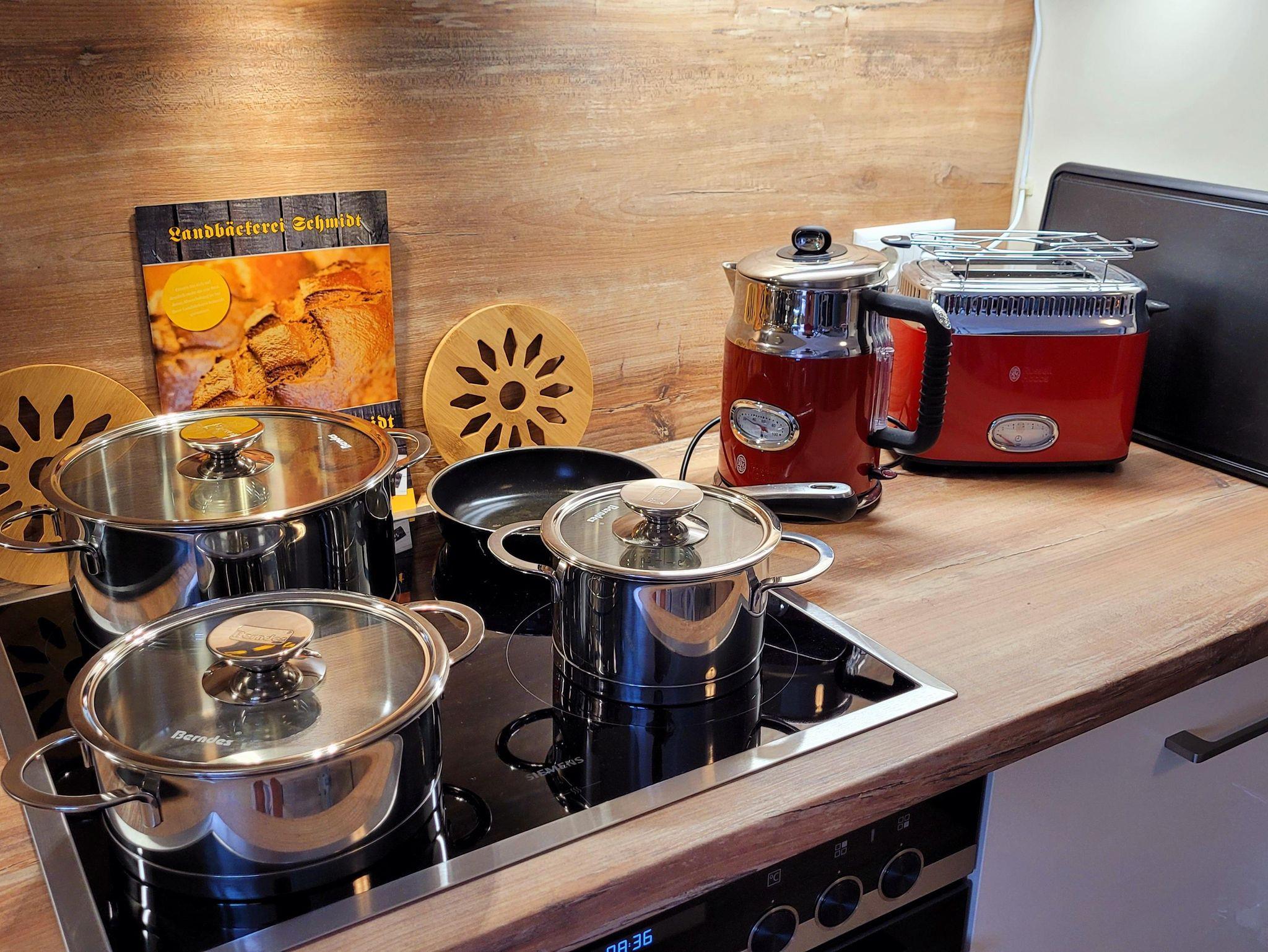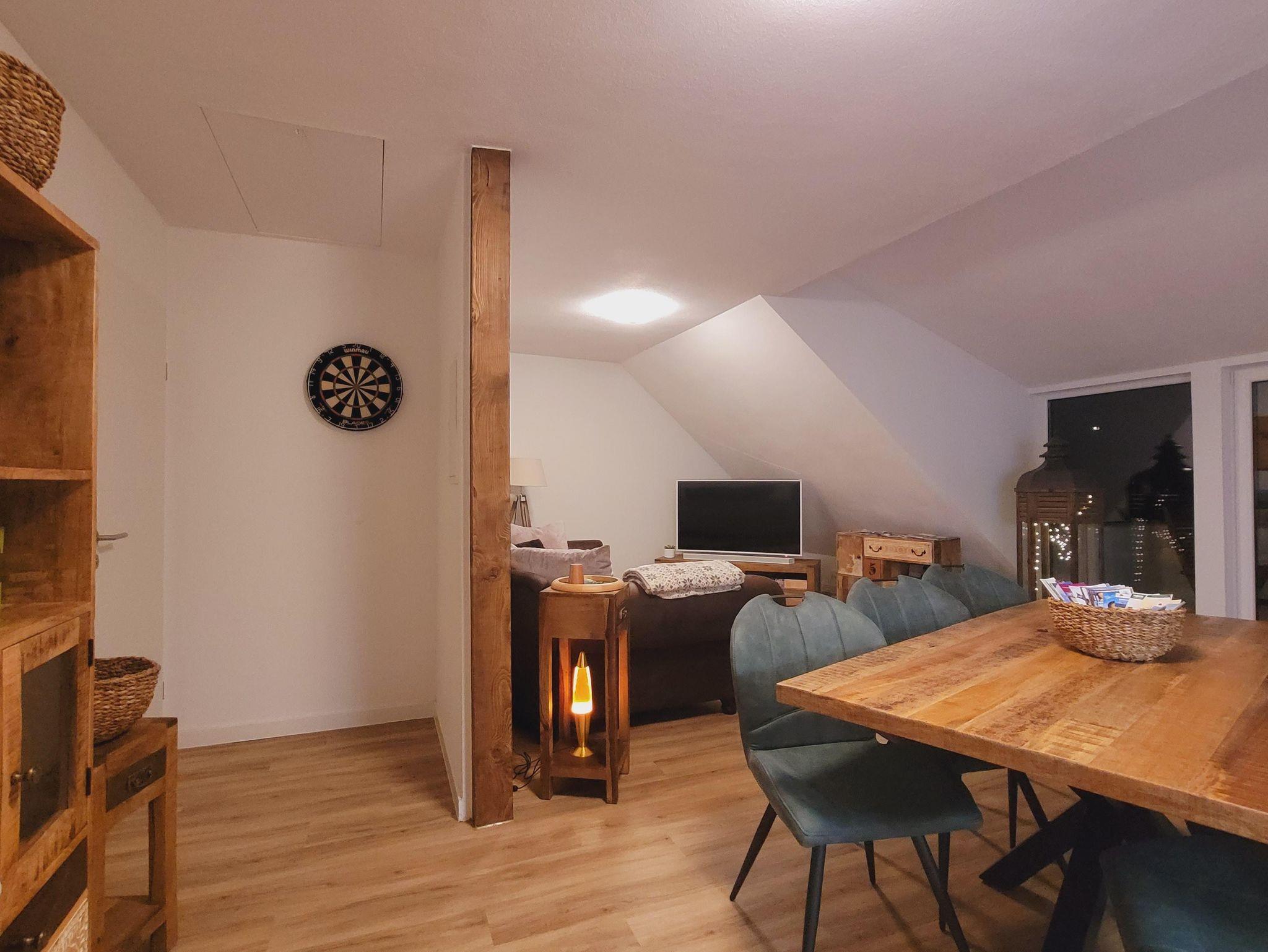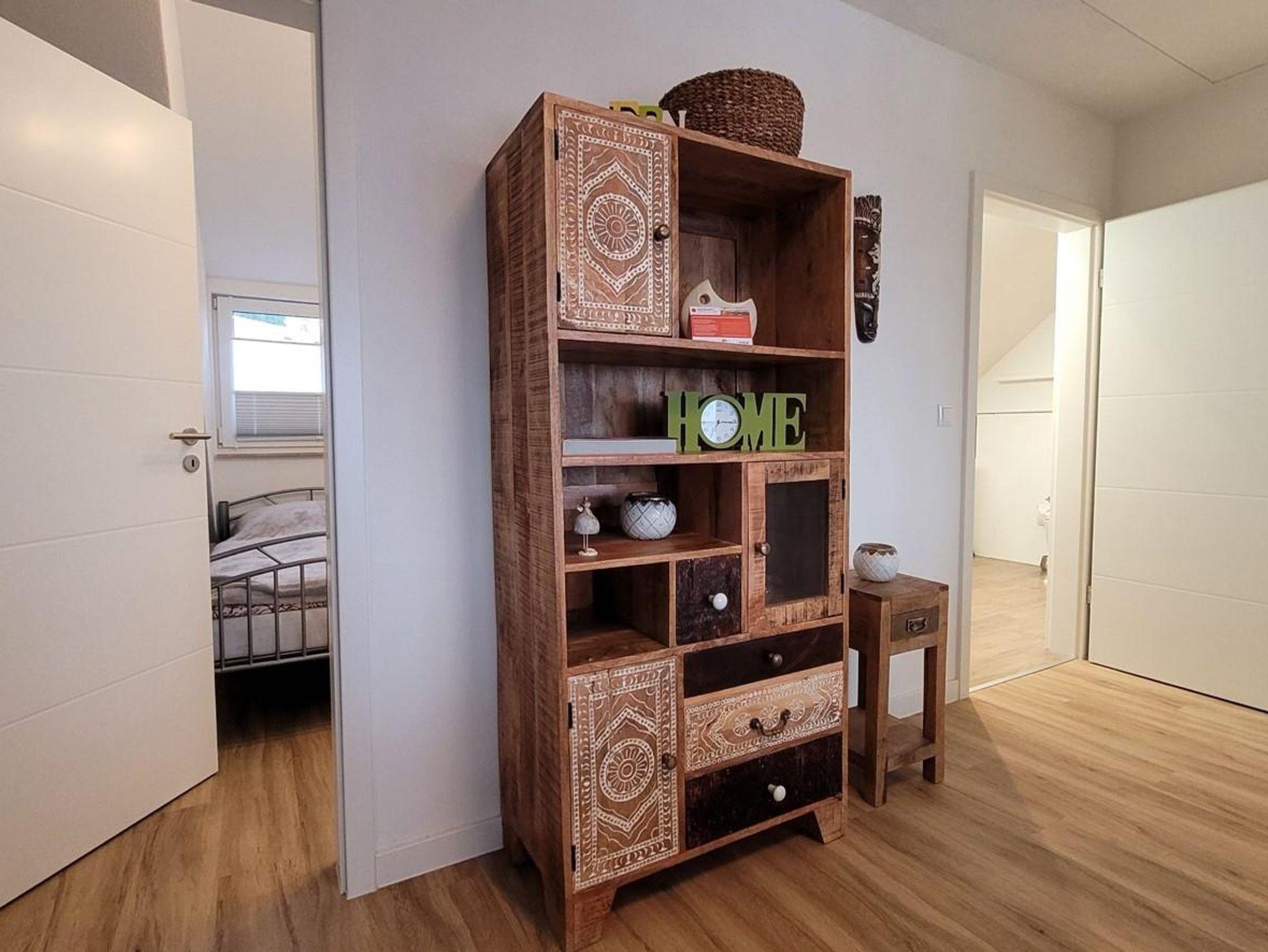 Alle Räume sind neu und hochwertig eingerichtet. In der Morgensonne auf dem Balkon können Sie das Frühstück einnehmen und den Blick ins Elbtal schweifen lassen. Ein Schlafzimmer ist mit einem Wasserbett (2m x 2,20m) und einem Schwebetürschrank ausgestattet. Im zweiten Schlafzimmer stehen zwei Einzelbetten (90cm x 2,00m) zur Verfügung. Diese können natürlich bei Bedarf gern zusammengeschoben werden können. Die offene Küche ist mit einem Cerankochfeld, Backofen, Geschirrspüler, Kaffeemaschine, Toaster, Wasserkocher, Waffelautomat und anderen Dingen ausgestattet. Ein großer moderner Esstisch bietet allen Gästen genügend Platz und ermöglicht einen gemütlichen Ausklang des Tages beim gemeinsamen Abenddinner oder einem Spieleabend. Im angrenzenden Wohnbereich können Sie dann am Abend auf der großzügigen und gemütlichen Echtledercouch entspannen. Und mit einem Glas Wein vor einem großen Curved-TV Kraft für den nächsten Tag schöpfen. Das geräumige Bad mit ebenerdigen Dusche rundet das Ambiente ab. Alle Zimmer sind mit Fußbodenheizung ausgestattet.
