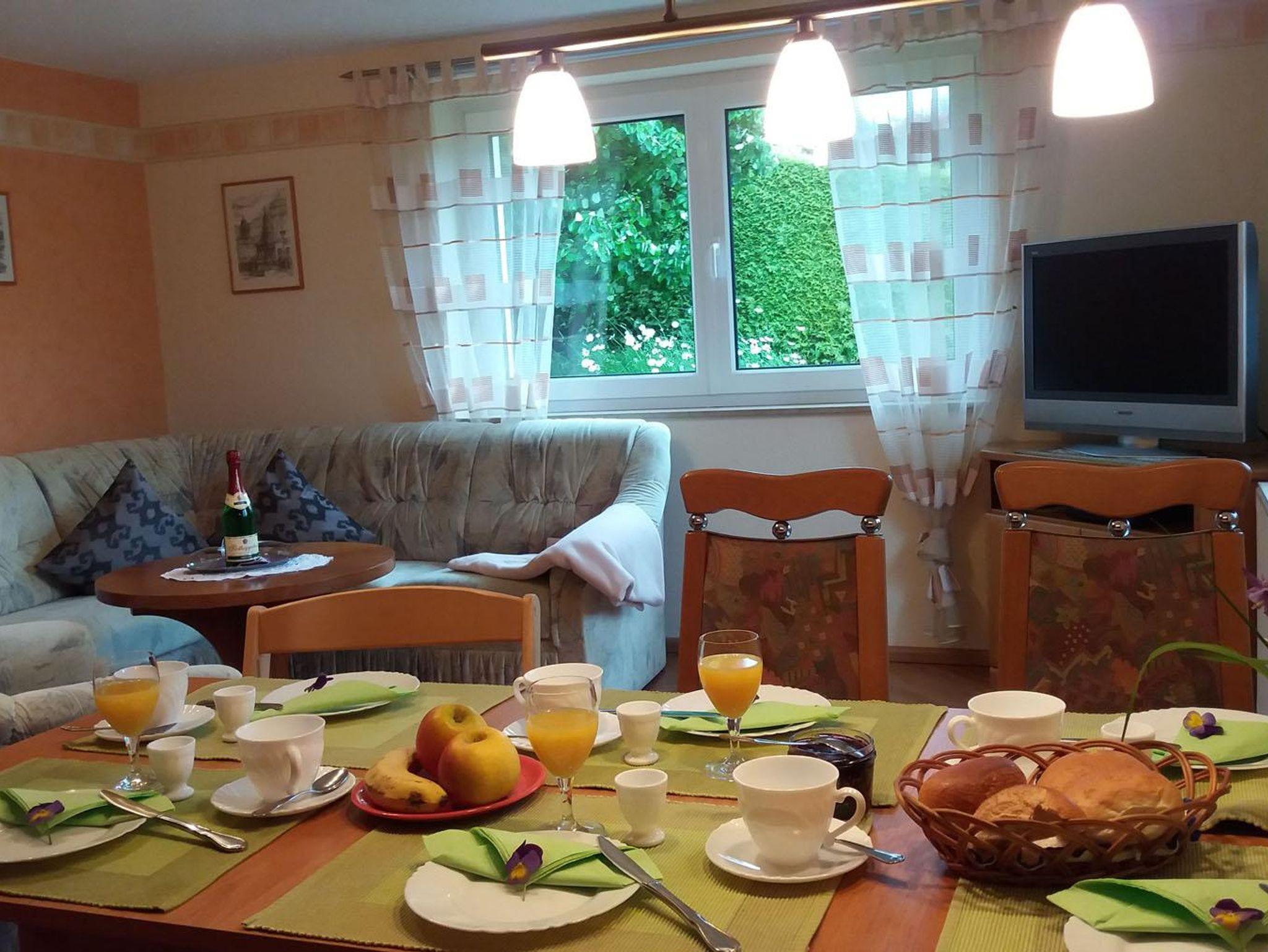 Die Ferienwohnung mit separatem Eingang liegt im Erdgeschoss unseres Hauses in Pfaffendorf. Sie ist barrierefrei, hell, modern und freundlich eingerichtet.