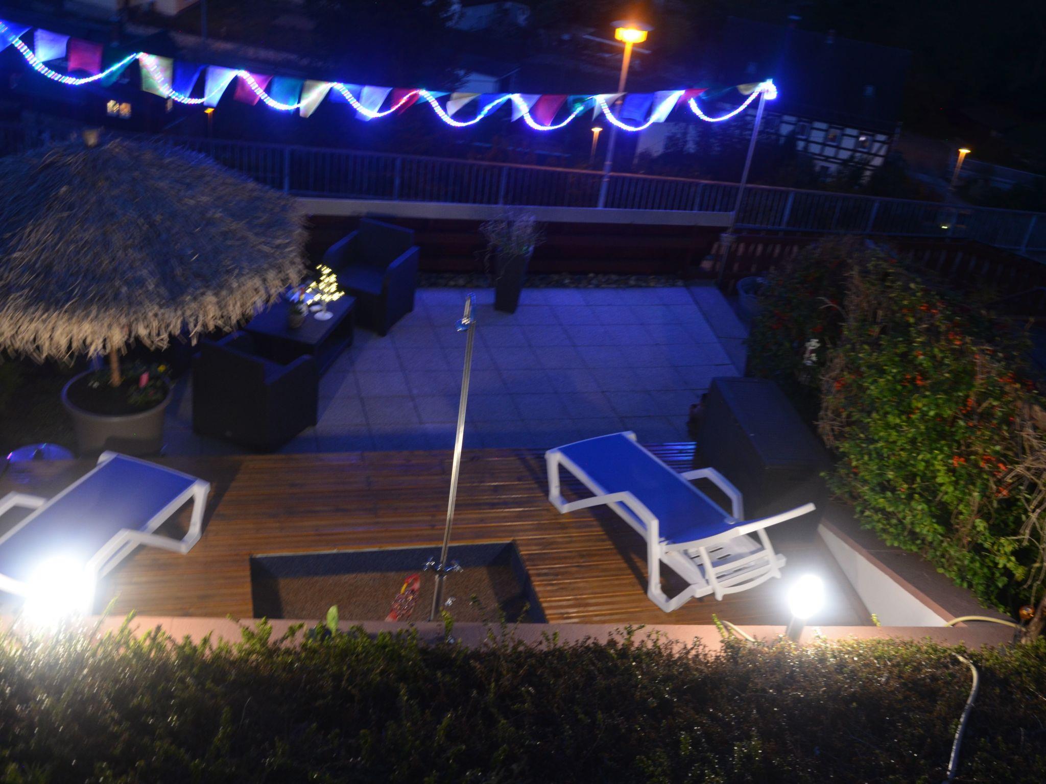 The holiday flat has a large terrace from which you can enjoy a wonderful view of the Lilienstein. A garden pavilion in a sheltered corner with rattan furniture invites you to spend cosy hours in the evening. There is a barbecue area right next to it.