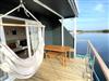 Auf dem großen Oberdeck hat man einen atemberaubenden Rundumblick auf die Schlei, den Hafen und den etwas entfernten Dom der Stadt Schleswig. Machen Sie es sich in der kuscheligen Lounge-Ecke, in der 2-Personen Hängematte oder auf den zwei Sonnenliegen bequem und lassen Sie mit Blick aufs Wasser die Seele baumeln. Oder genießen Sie auf der unteren überdachten 11 qm großen Terrasse am großen Tisch oder im Hängesessel in vorderster Reihe ganz exklusiv das maritime Flair mit einem Sundowner und einem gegrillten Fisch.
