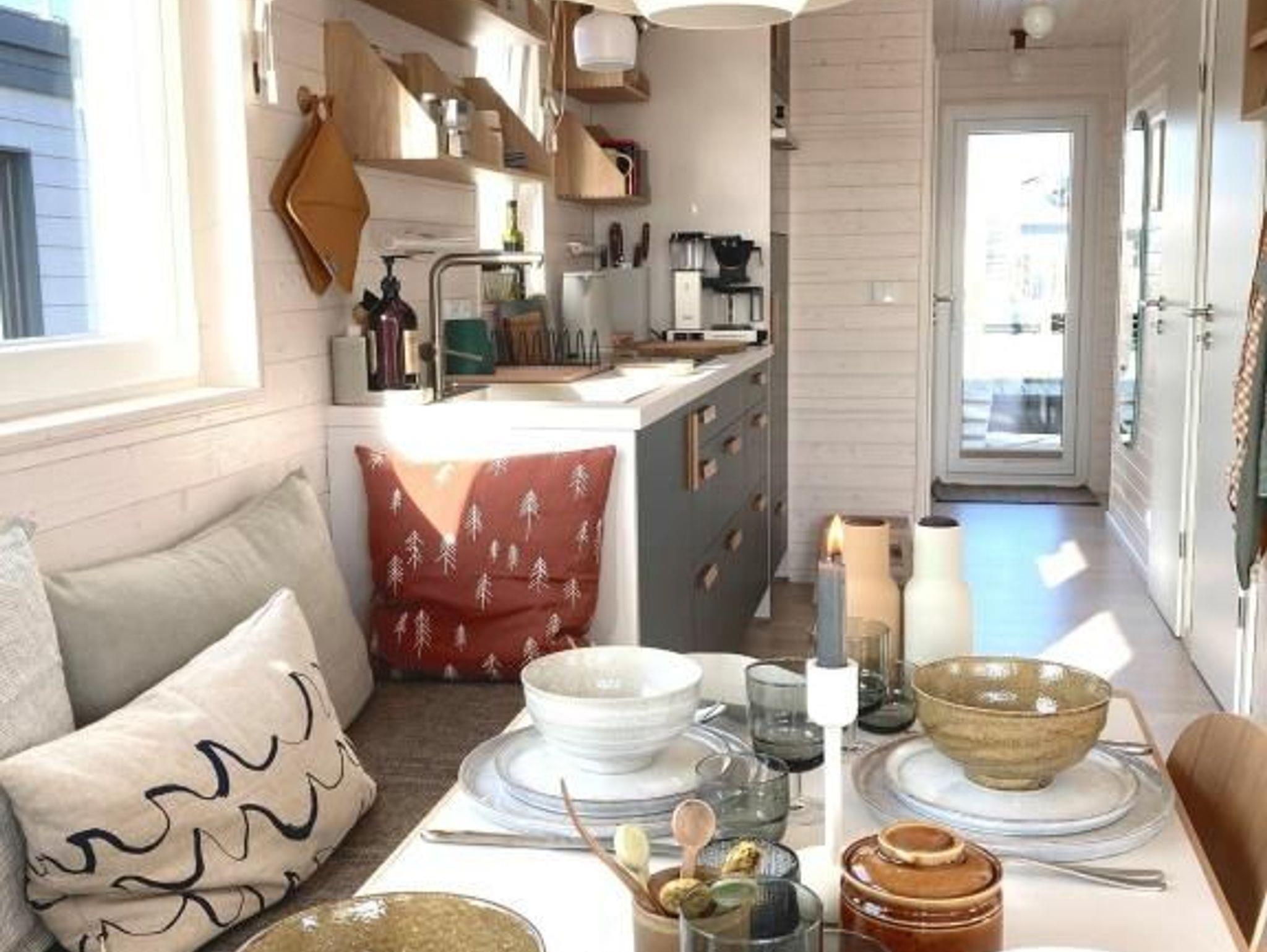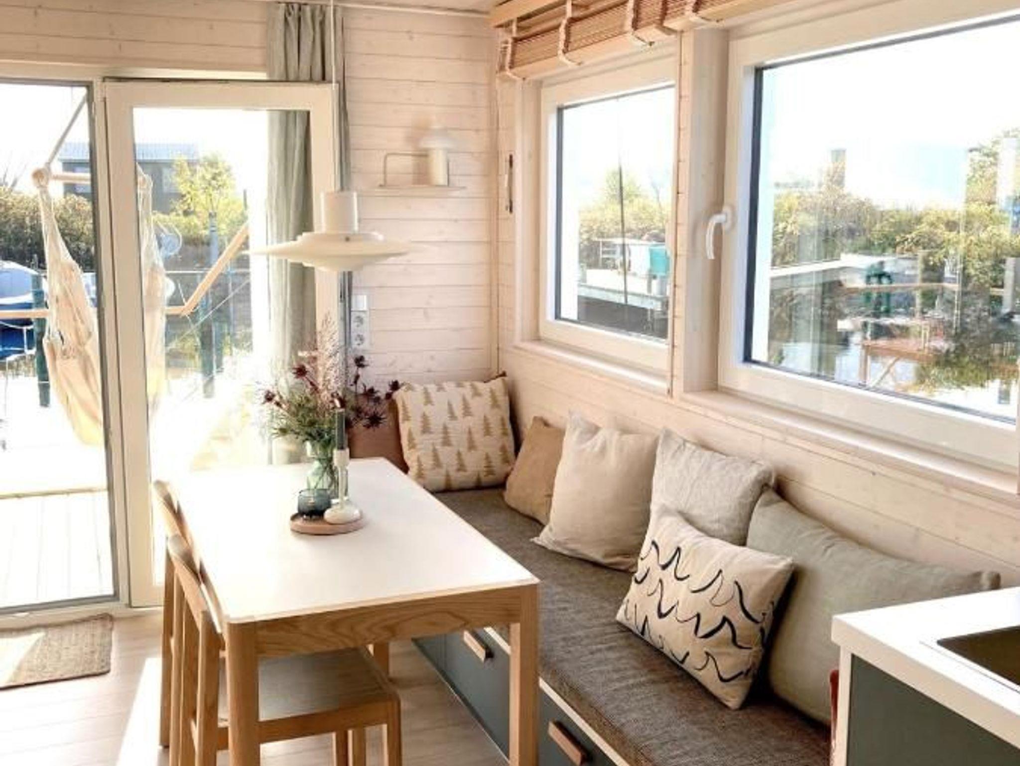 Dieses geräumige festliegende Hausboot bietet Ihnen den ganzen Komfort einer modernen und hochwertigen Ferienwohnung mit großzügiger Sonnen- und Dachterrasse. Im gemütlichen lichtdurchfluteten Wohnraum mit offener Küche lässt es sich entspannt auf der Couch verweilen oder Sie kommen am großzügigen Tisch zu einem leckeren Essen oder Spieleabend zusammen.