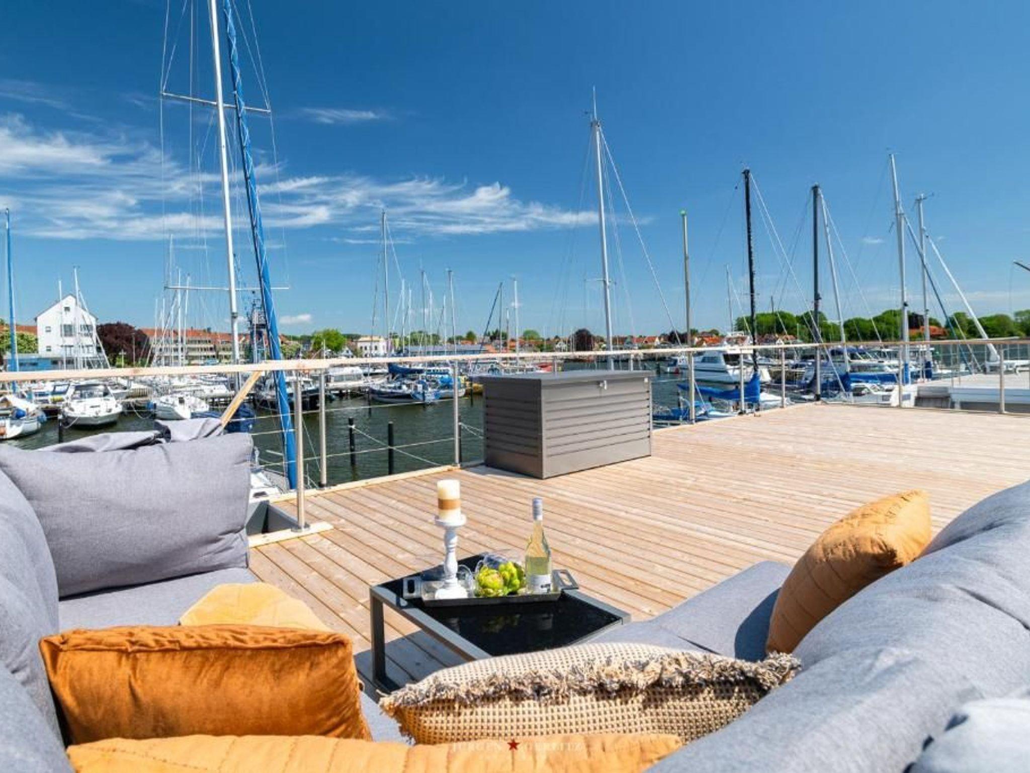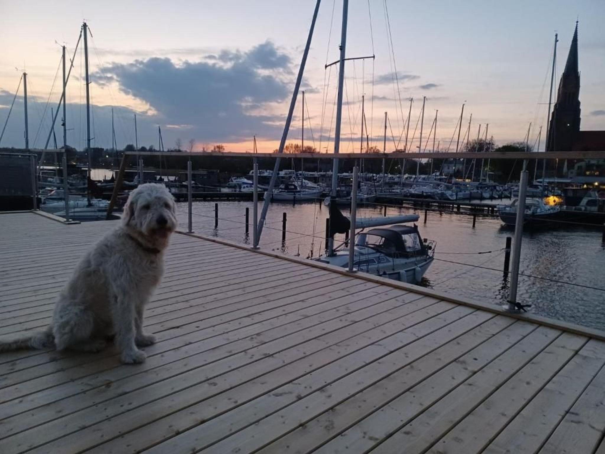 Urlaub auf dem gemütlichen Stern Hausboot Glücksmomente in der ersten Reihe auf dem Ostseefjord Schlei im Schleswiger Stadthafen bedeutet Entspannung und Erholung, Freiheit oder Abenteuer für Urlaub mit Freunden, Familien oder Paare.