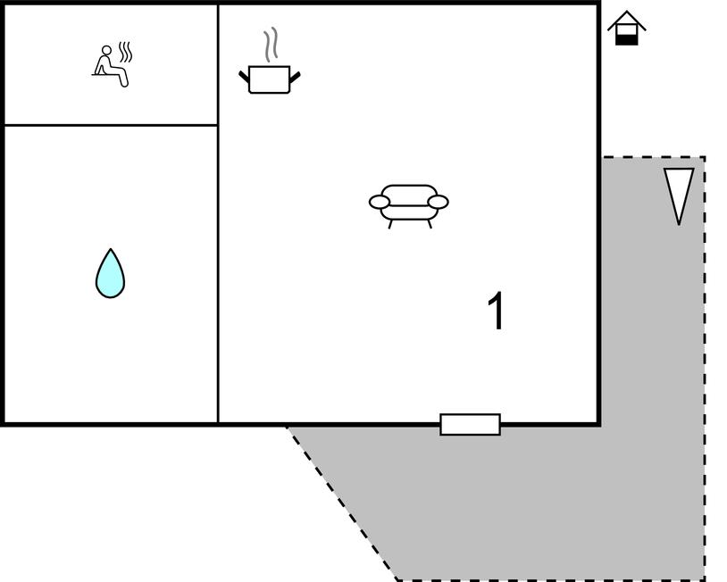 I kommer ind i dette lille feriehus, der er indrettet som etværelseslejlighed, over den overdækkede terrasse med grill og havemøbler. Ud over jeres egen sauna kan I også nyde den herlige udsigt fra terrassen, og også den rolige beliggenhed bidrager til en herlig ferie.
