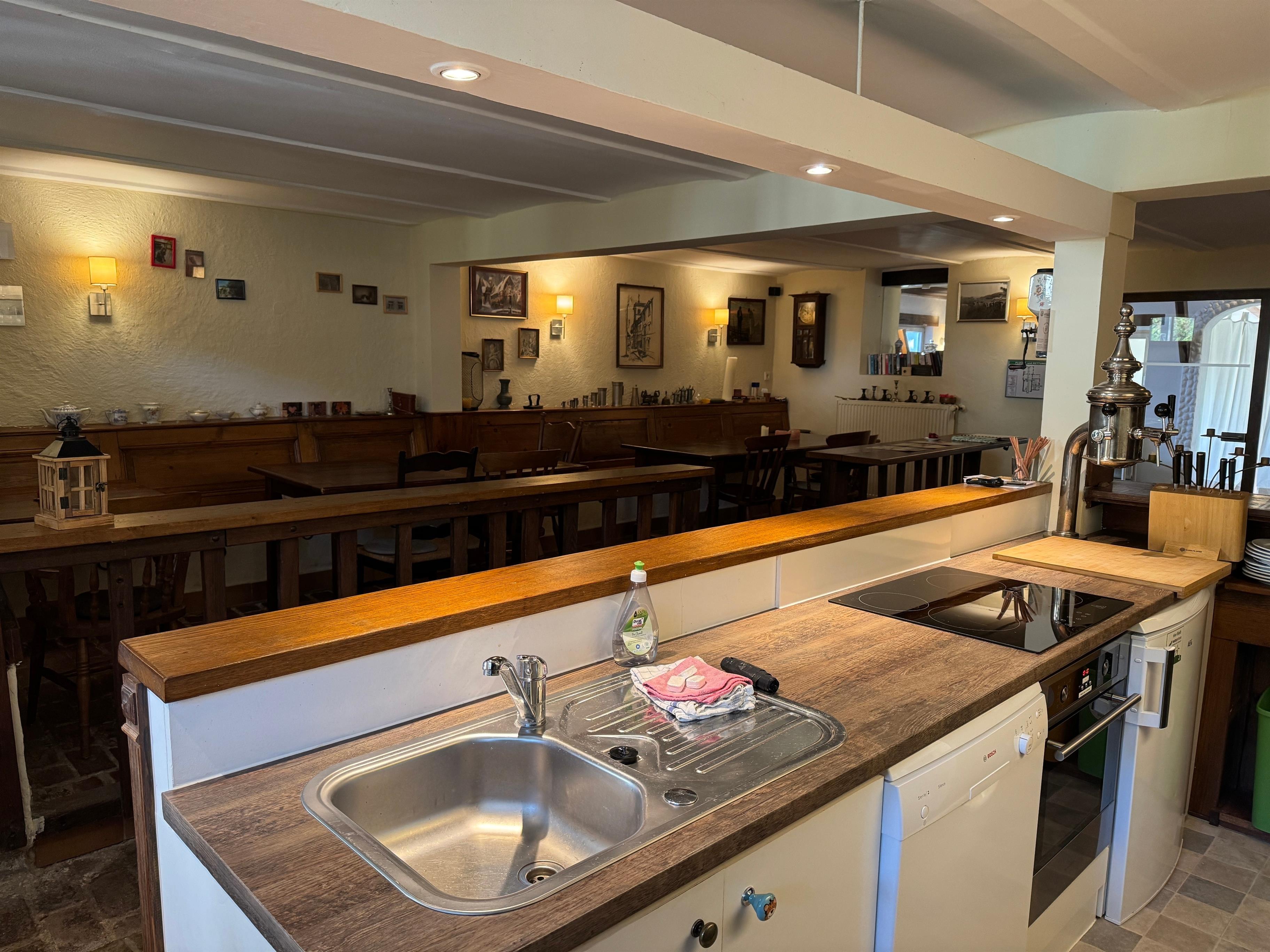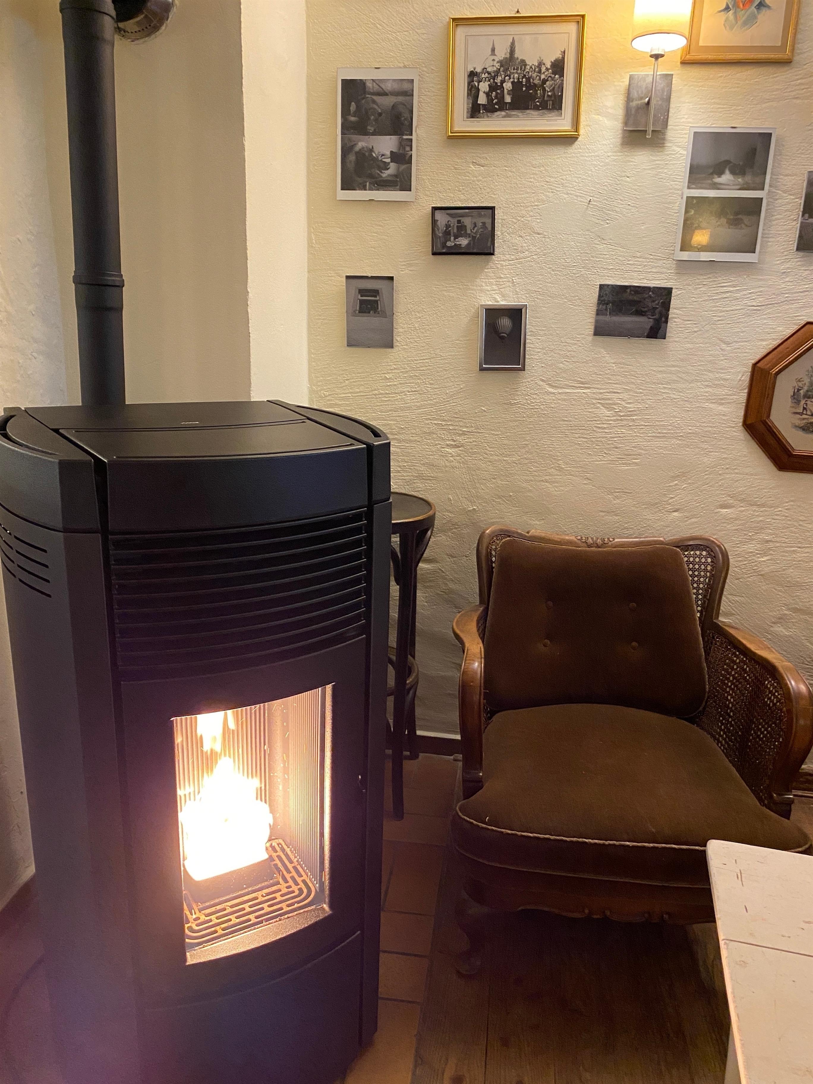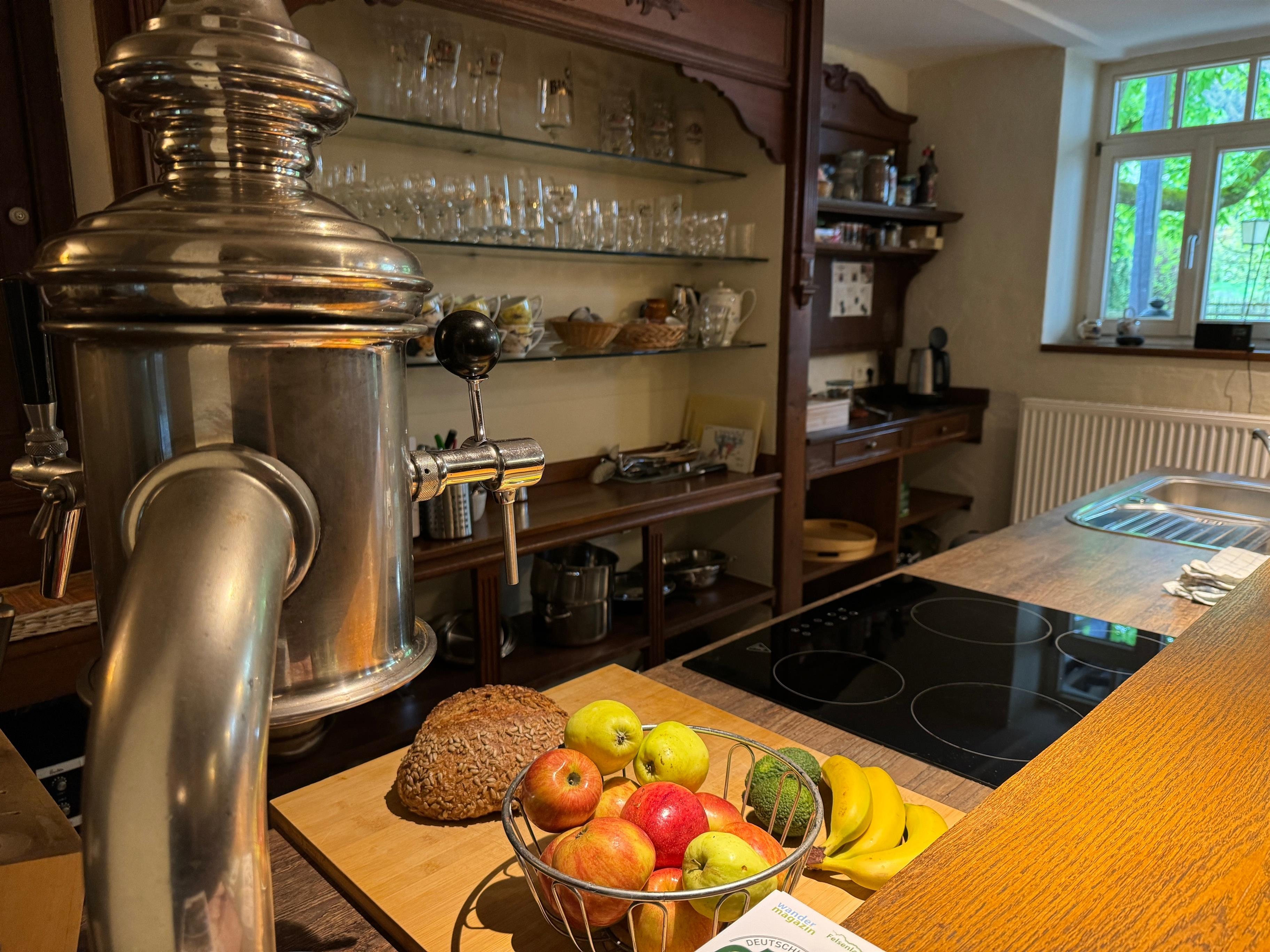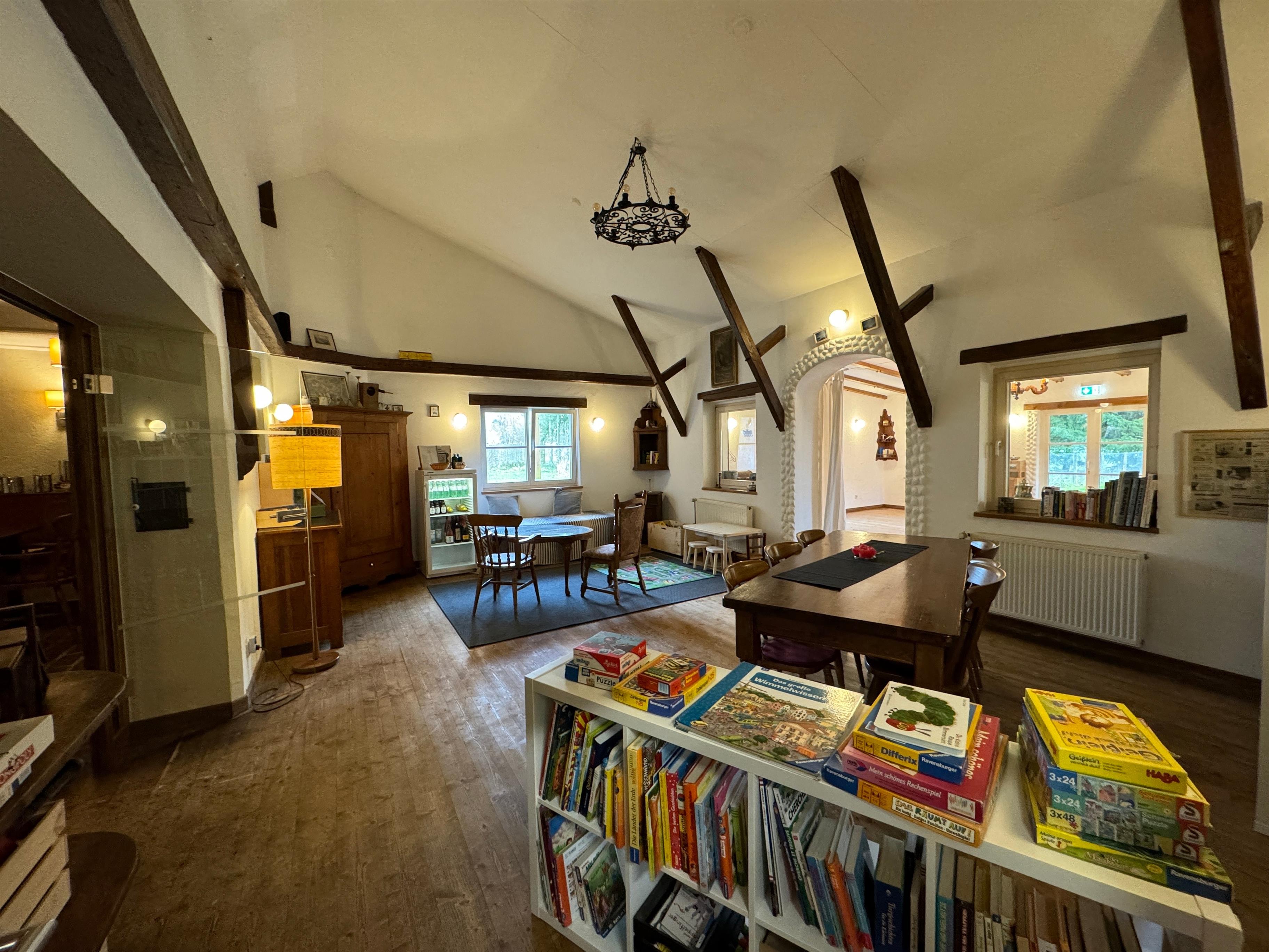 Im Nebengebäude befindet sich der große Aufenthaltsraum mit Pelletofen und dier Selbstversorgerküche.