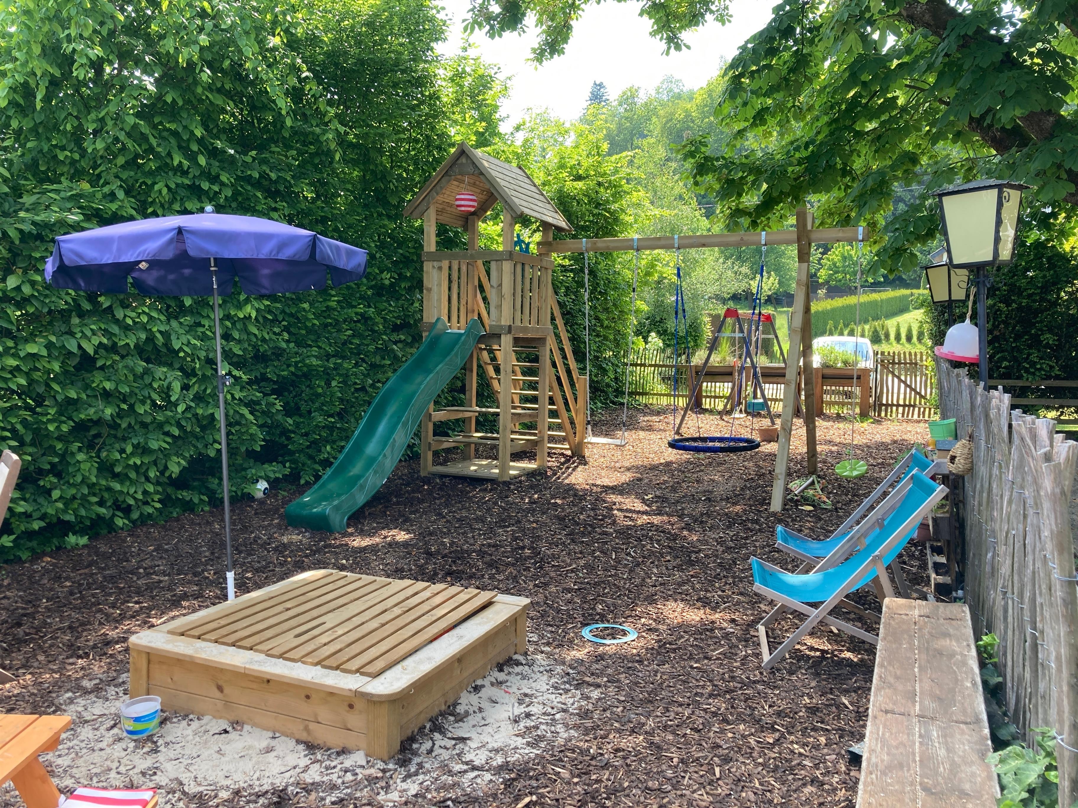 Im Außenbereich befindet sich ein großer Kinderspielplatz.