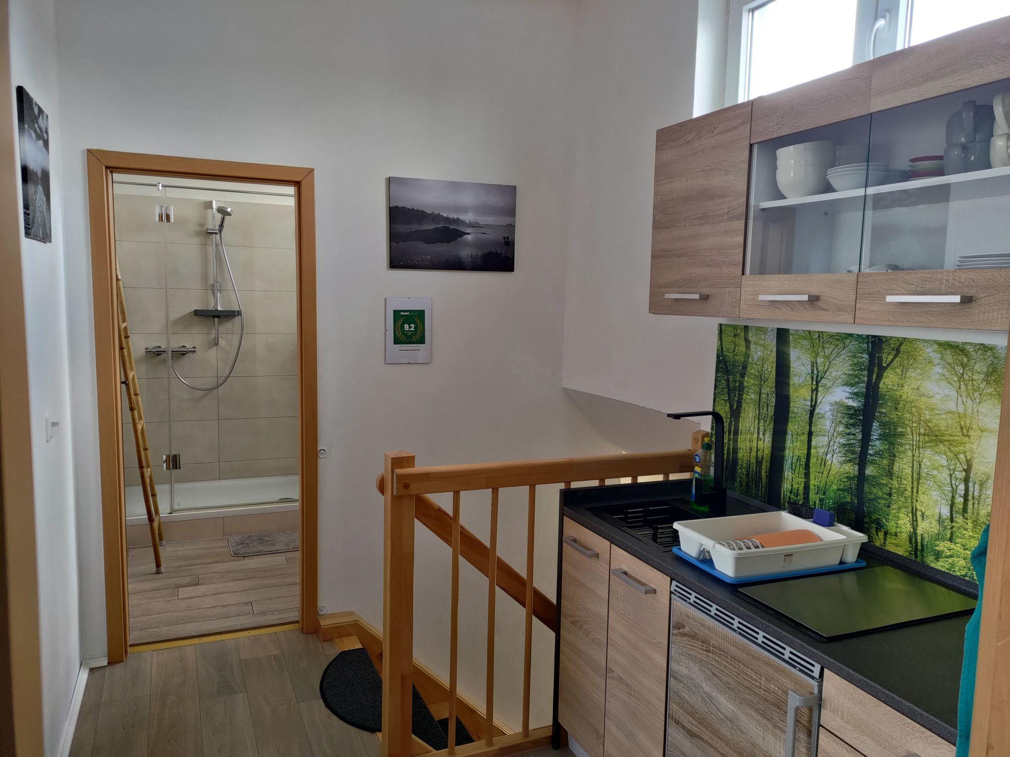 Our house is located in the idyllic village of Großsteinberg am See. We have 7 lakes in our neighbourhood, three of which are suitable for swimming. Unfortunately, our local lake cannot be used for swimming as it is completely enclosed. However, the Moritz and Grillensee lakes are all the more beautiful for swimming. You can reach these lakes within 7 minutes of our accommodation. From our holiday flat, you can take beautiful hiking routes through the Mulde Valley. The Mulde Valley is a paradise for cycle tourists! Almost 150 kilometres of cycle paths around the Mulde valley are a tourist highlight. You can also use our on-site bike hire service. We also offer you a lockable storage facility for your bikes at the holiday flat. Thanks to the direct transport links with a bus line that starts almost on the doorstep, you are very flexible when travelling in all directions. We are 3 kilometres from the nearest motorway junction. For our younger guests we can provide a baby/children's travel cot on request.