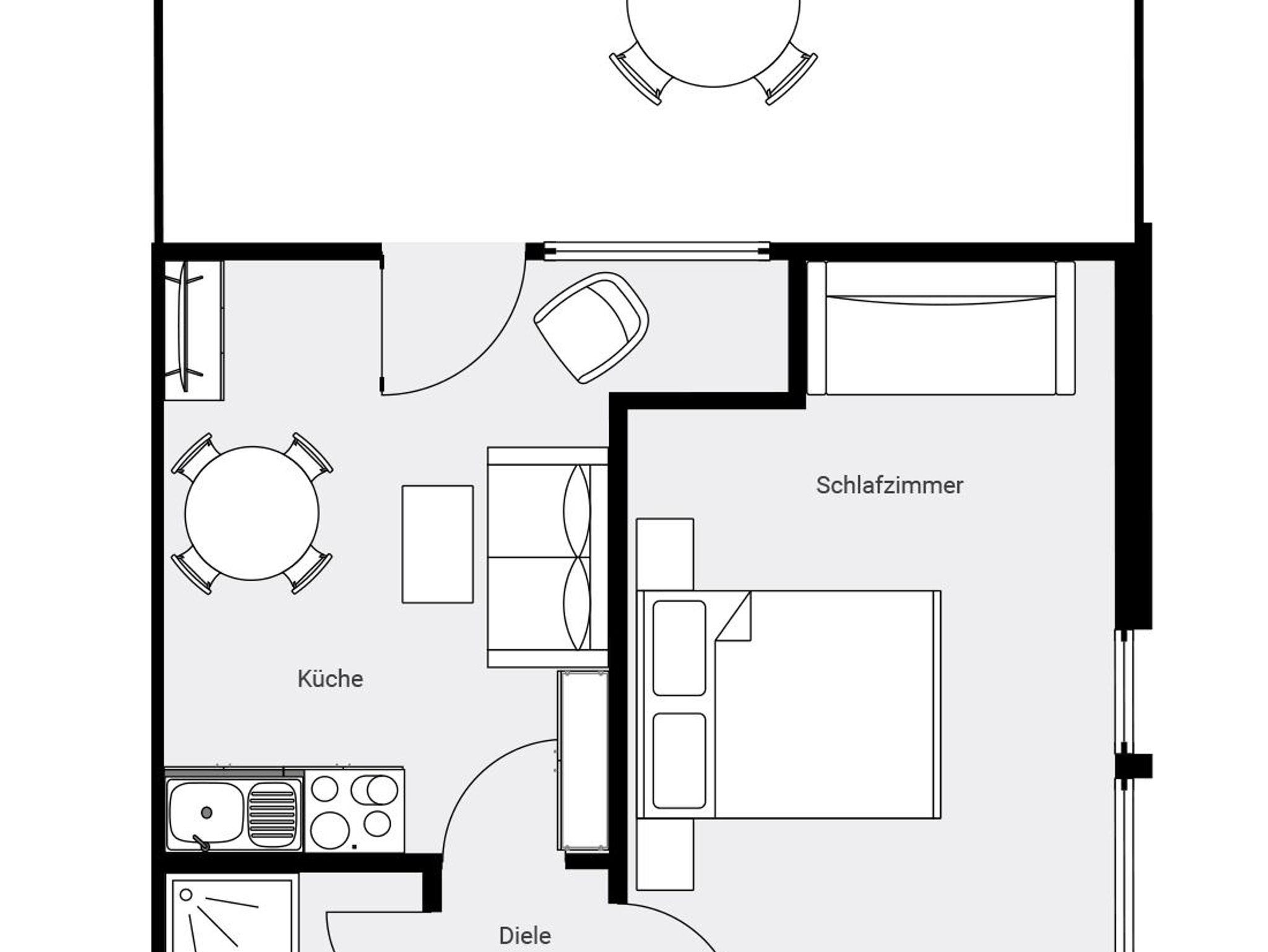 Ferienwohnung für 2-4 Personen. Wohn-Schlafraum mit Esstisch, Küche, Sitzgelegenheit für 4 Personen, SAT-TV, Stereo-Kompakt-Anlage, Bad mit Dusche/WC, Balkon. Haustiere nur auf Anfrage, Aufpreis pro Tag 10 €.