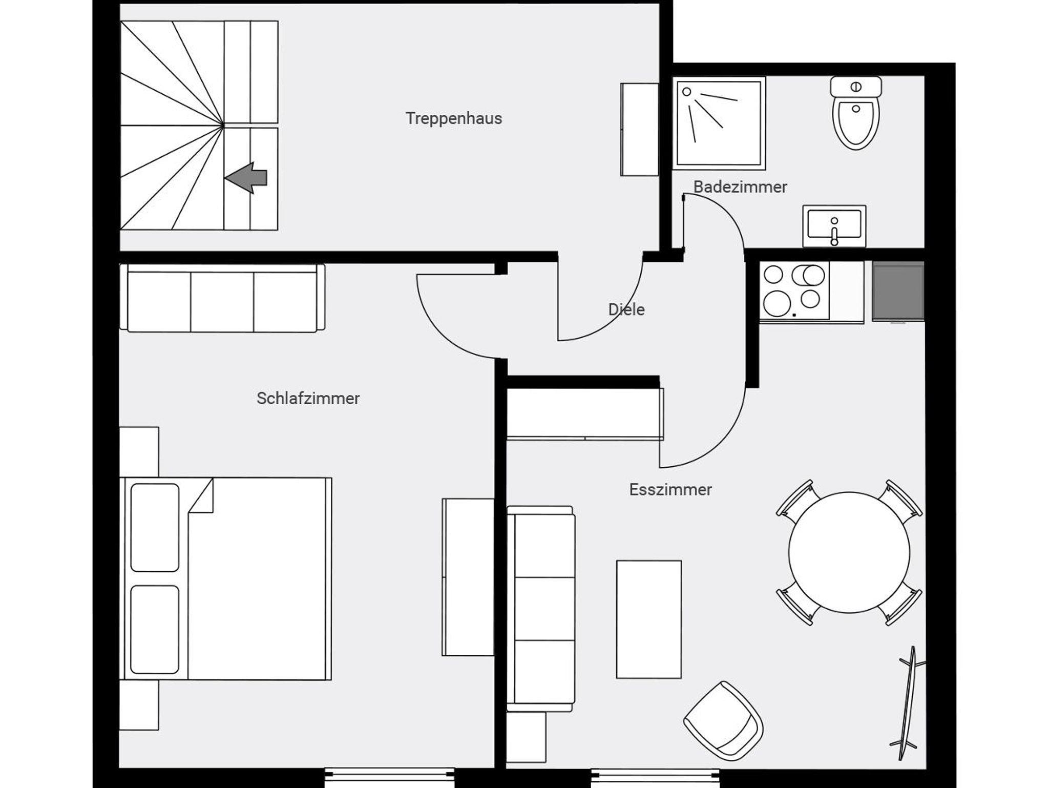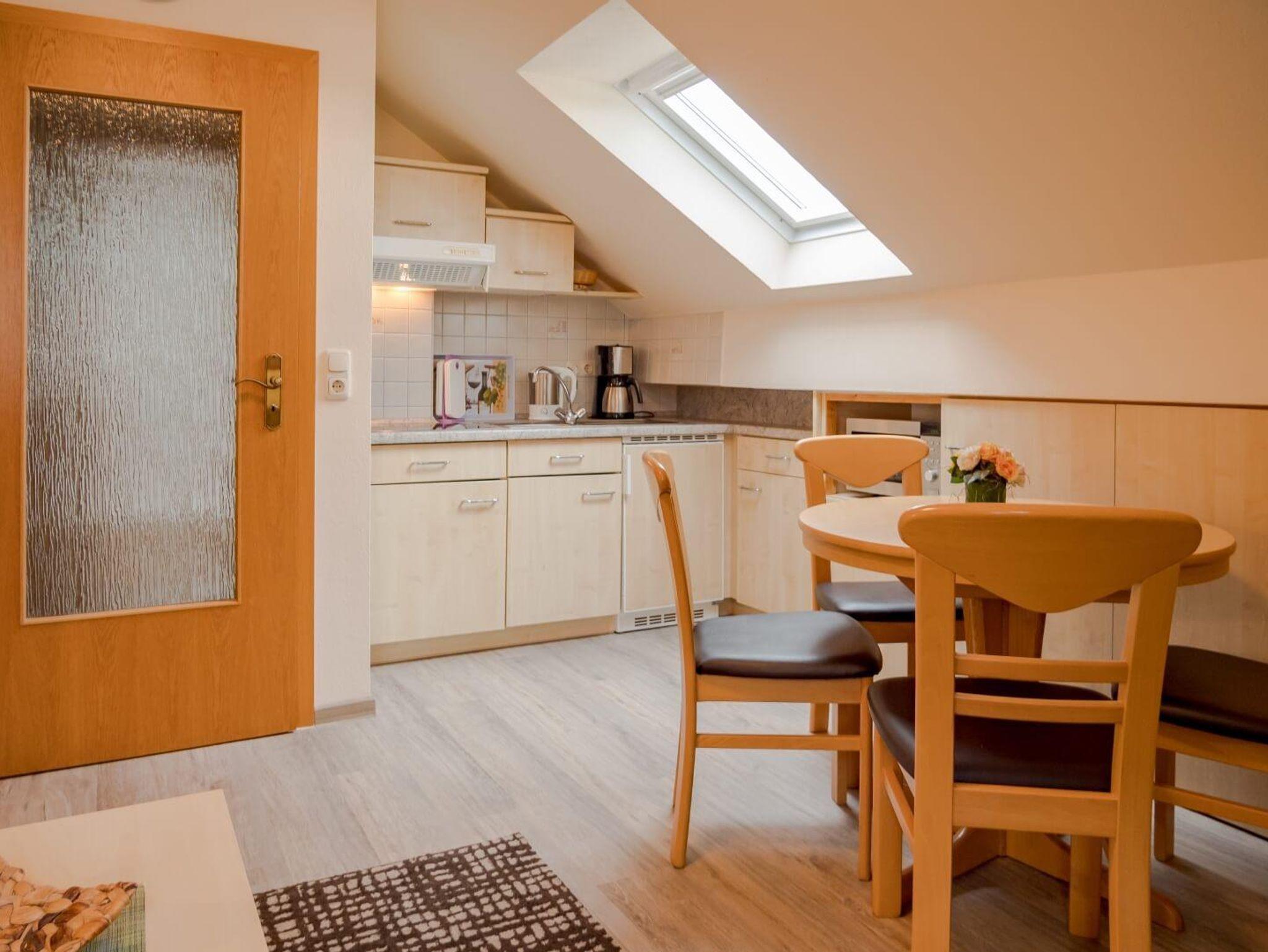 Ferienwohnung für 2-4 Personen. Wohn-Schlafraum mit Esstisch, Küche, Sitzgelegenheit für 4 Personen, SAT-TV, Stereo-Kompakt-Anlage, Bad mit Dusche/WC. Haustiere nur auf Anfrage, Aufpreis pro Tag 10 €.