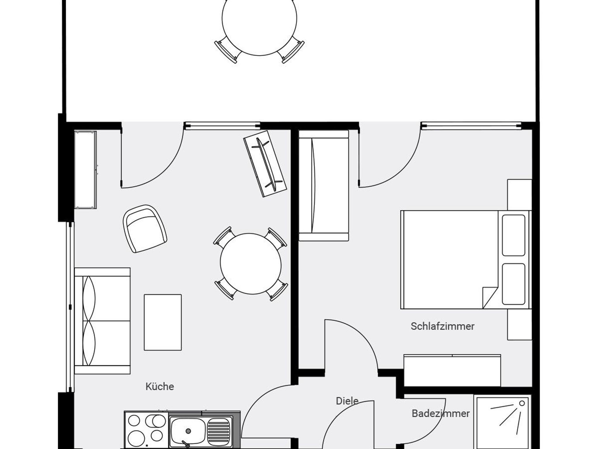 Ferienwohnung für 2-4 Personen. Wohn-Schlafraum mit Esstisch, Küche, Sitzgelegenheit für 4 Personen, SAT-TV, Srereo-Kompakt-Anlage, Bad mit Dusche/WC, Balkon. Haustiere nur auf Anfrage, Aufpreis pro Tag 10 €.