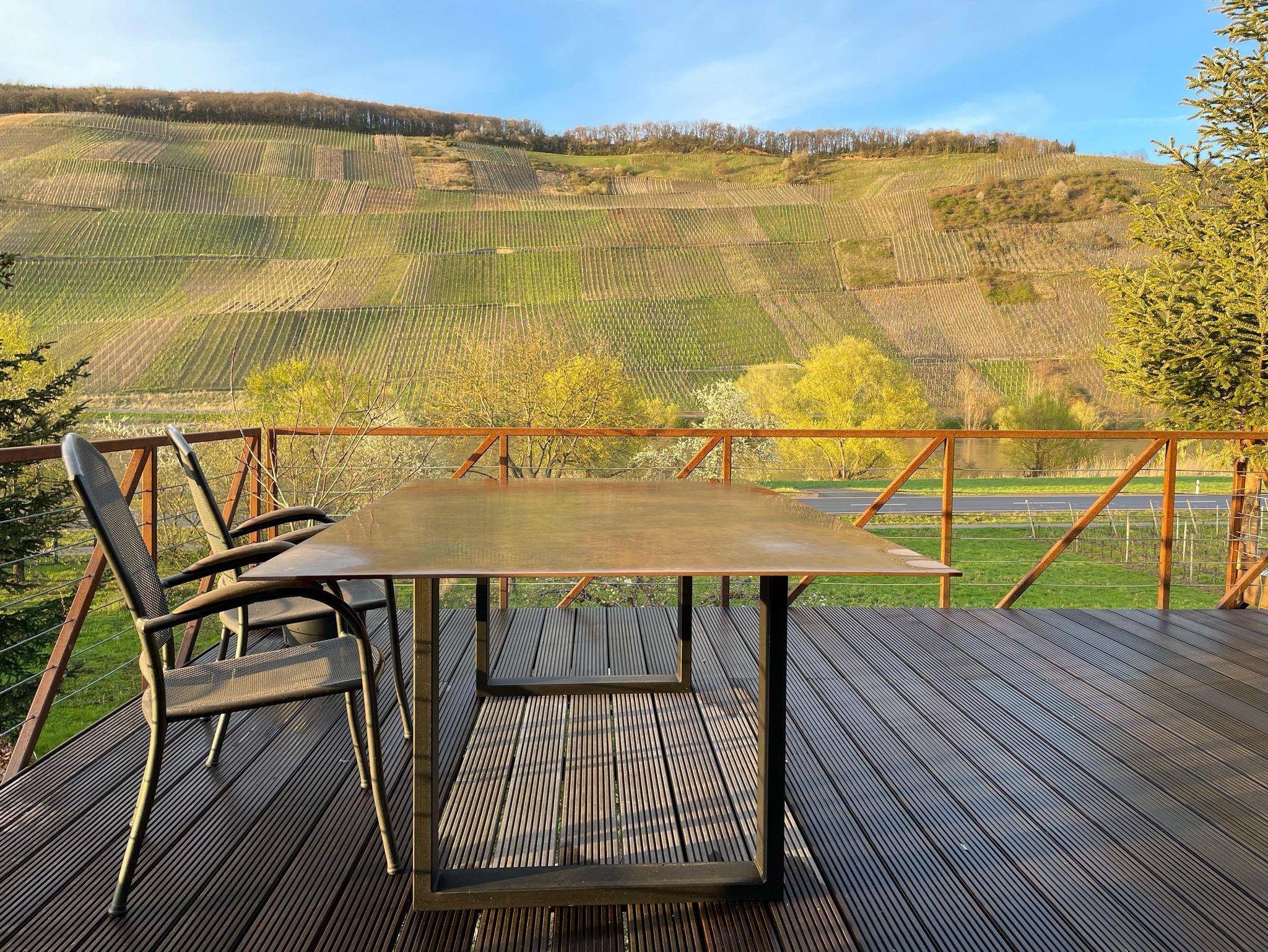 Sie ist modern, sehr individuell und hochwertig eingerichtet und befindet sich im Anbau unseres Weingutes. Die ruhige Lage direkt an der Mosel, der unbeschreibliche Blick auf die gegenüberliegenden Steilhänge laden dazu ein, die Zeit zu vergessen und sich vollkommen zu entspannen.