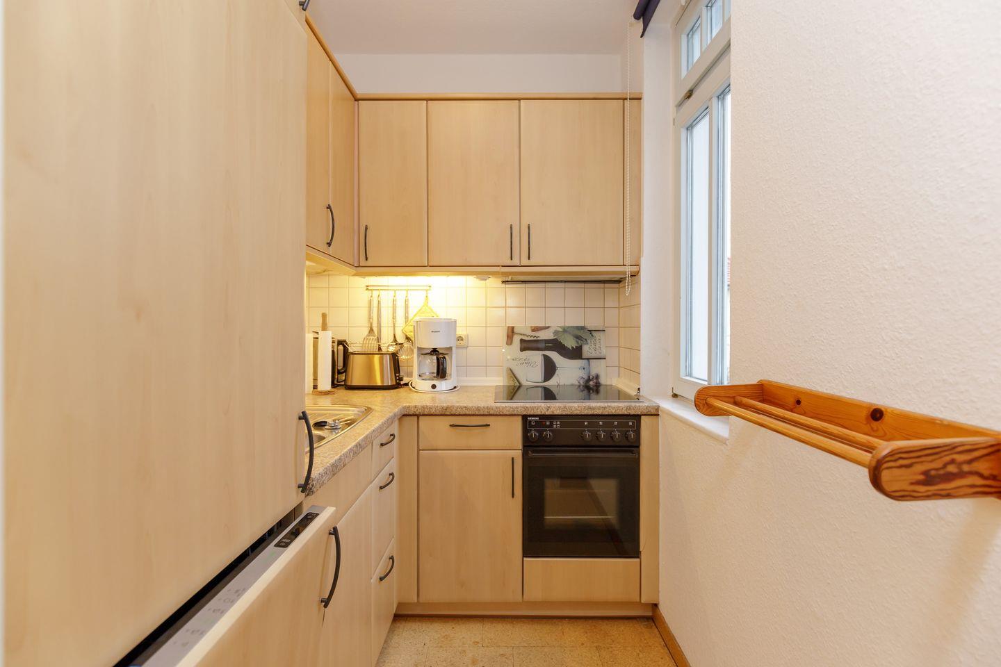 Die offene Pantryküche ist modern ausgestattet – Geschirrspüler, Backofen und Mikrowelle machen die Selbstverpflegung zum Kinderspiel. Das moderne Duschbad sorgt für Frische und Komfort. Zur technischen Ausstattung gehören ein Flachbild-TV und WLAN.