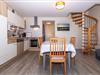 Die moderne Wohnküche ist voll ausgestattet und bietet Platz für gesellige Mahlzeiten zu sechst. Ob frische Brötchen am Morgen oder ein gemütliches Abendessen nach einem Strandtag – hier wird gemeinsame Zeit zum Genuss.