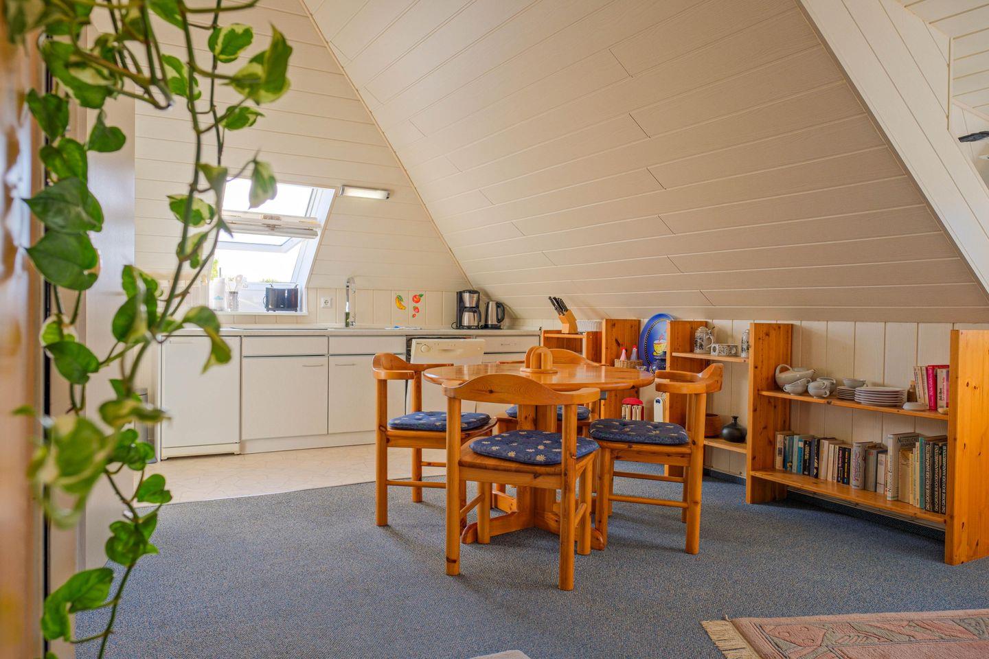 Die komplett ausgestattete Küchenzeile mit 4-Zonen-Cerankochfeld, Geschirrspüler, Kühlschrank, Mikrowelle, Kaffeemaschine, Wasserkocher und Toaster lässt keine Wünsche offen. Am Esstisch für vier Personen genießen Sie Ihre Mahlzeiten in entspannter Atmosphäre.