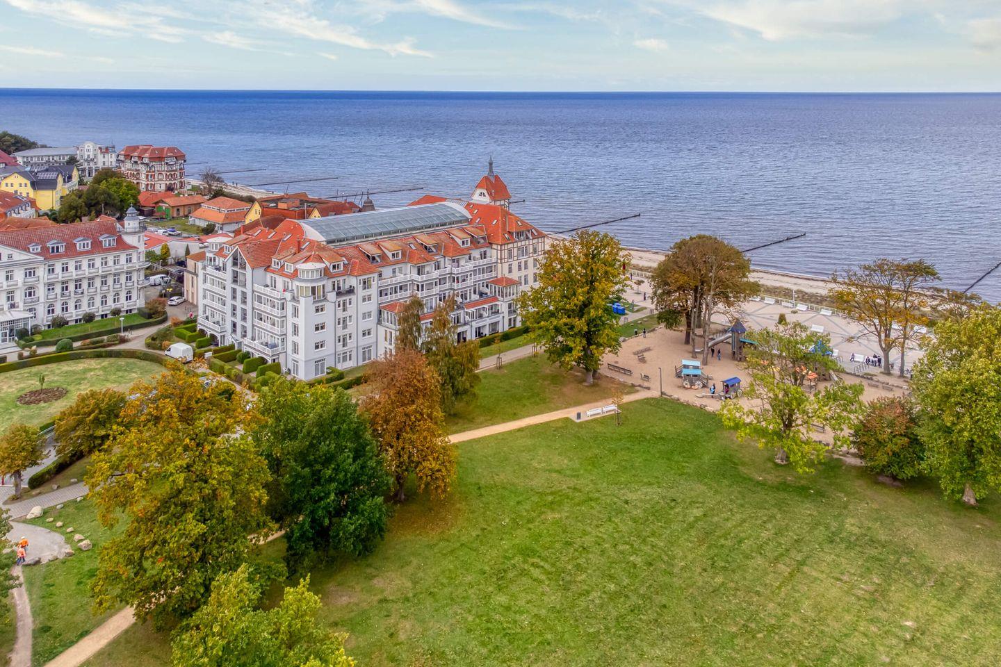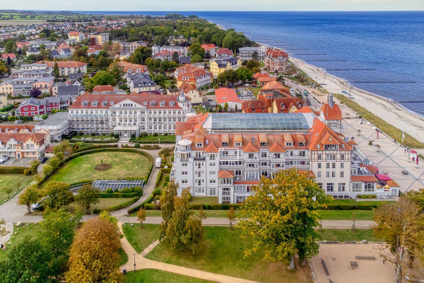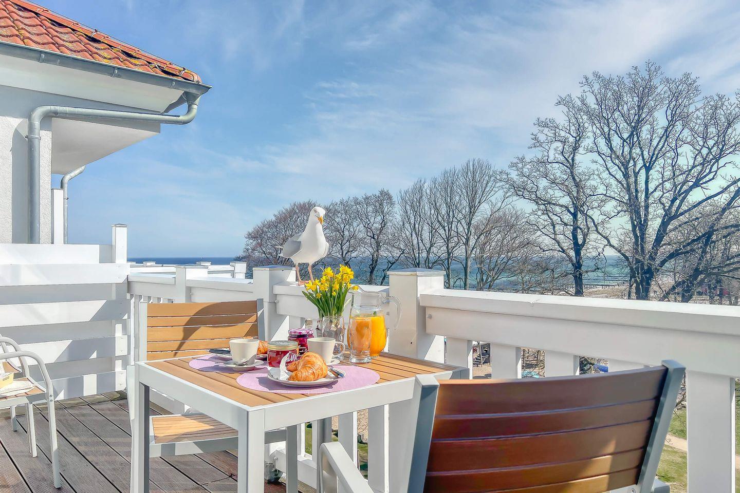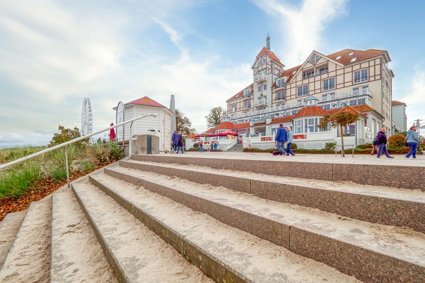 Dieses außergewöhnliche Apartmenthaus verzaubert als architektonischer Schatz seine Gäste mit exklusiver Lage und einzigartigem Charme. Das Haus „Meeresblick“ wurde an der Stelle (und nach dem Vorbild) des ehemaligen Kurhauses im Jahr 2000 neu erbaut. Die Architektur des Hauses verbindet Stilelemente der Bäderarchitektur mit modernen und komfortablen Ansprüchen.