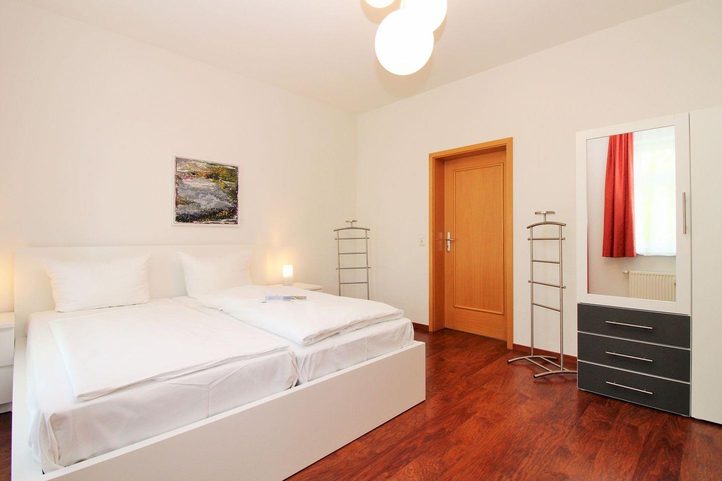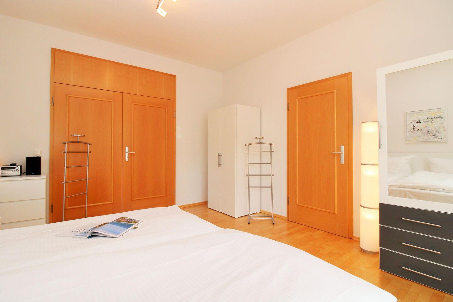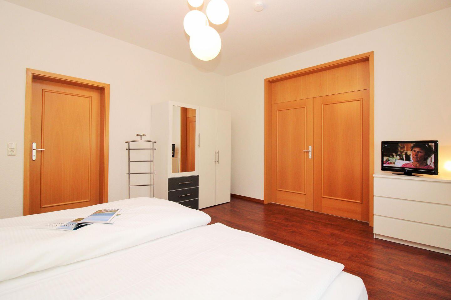 Das geräumige und gemütliche 2. Schlafzimmer ist ebenfalls mit einem bequemen Doppelbett, Nachttischen, einem großen Kleiderschrank sowie einer Kommode eingerichtet. Darüber hinaus steht Ihnen hier ein weiteres zusätzliches TV-Gerät zur Verfügung.
