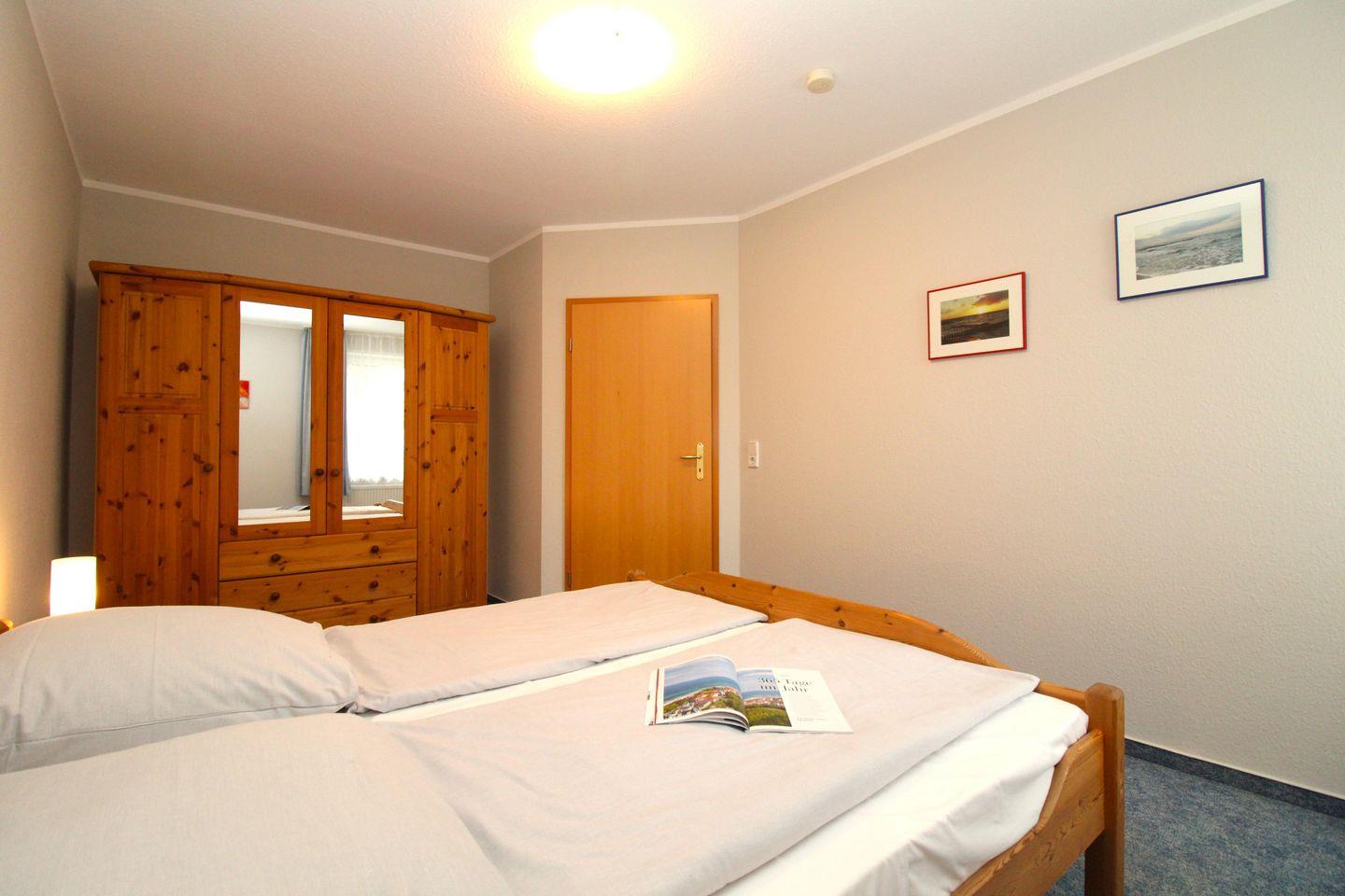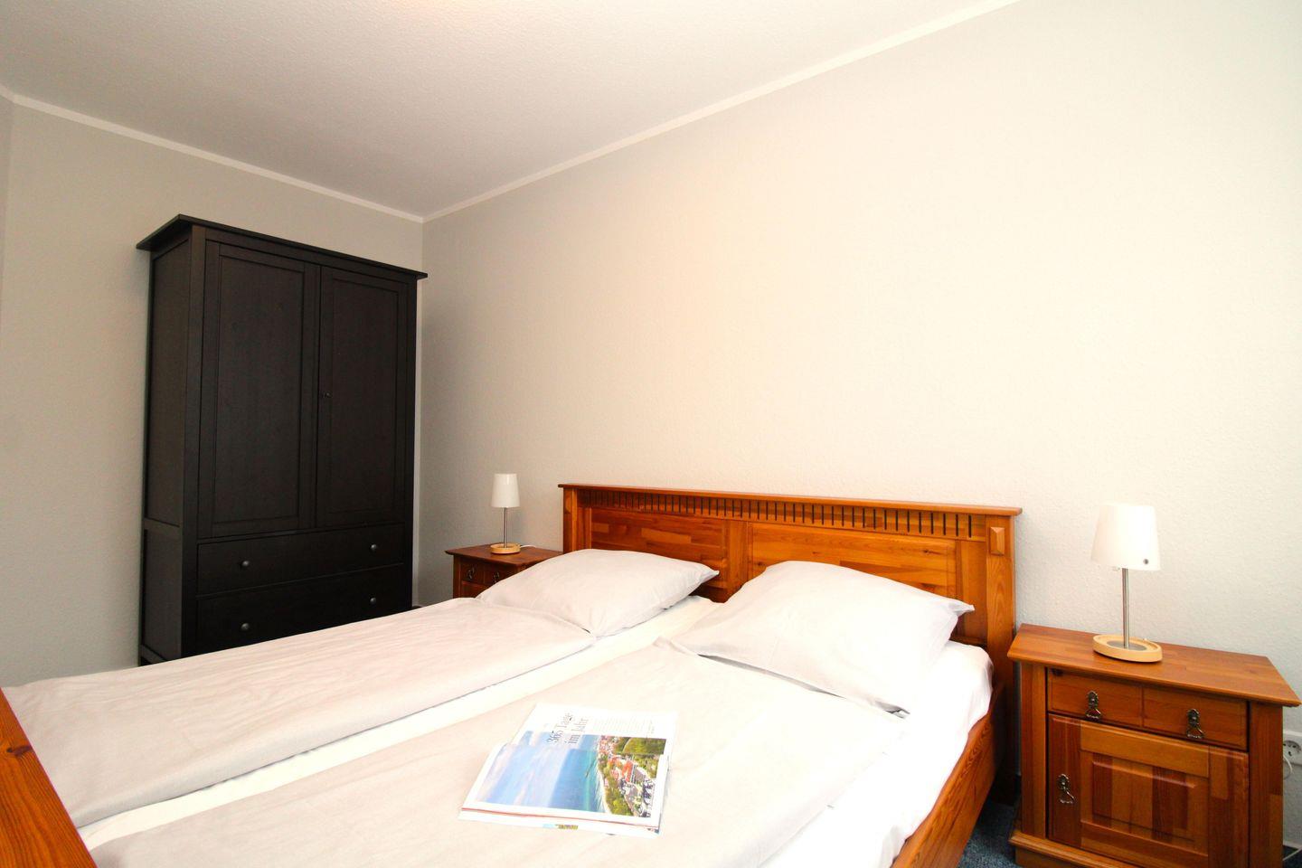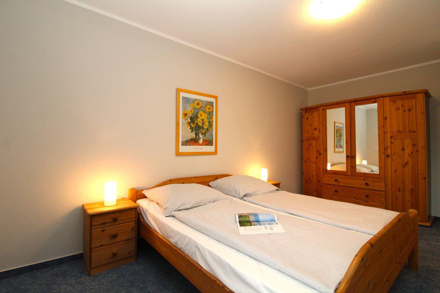Das separate 2. Schlafzimmer verfügt ebenfalls über ein bequemes Doppelbett mit Nachttischen sowie einen geräumigen Kleiderschrank.