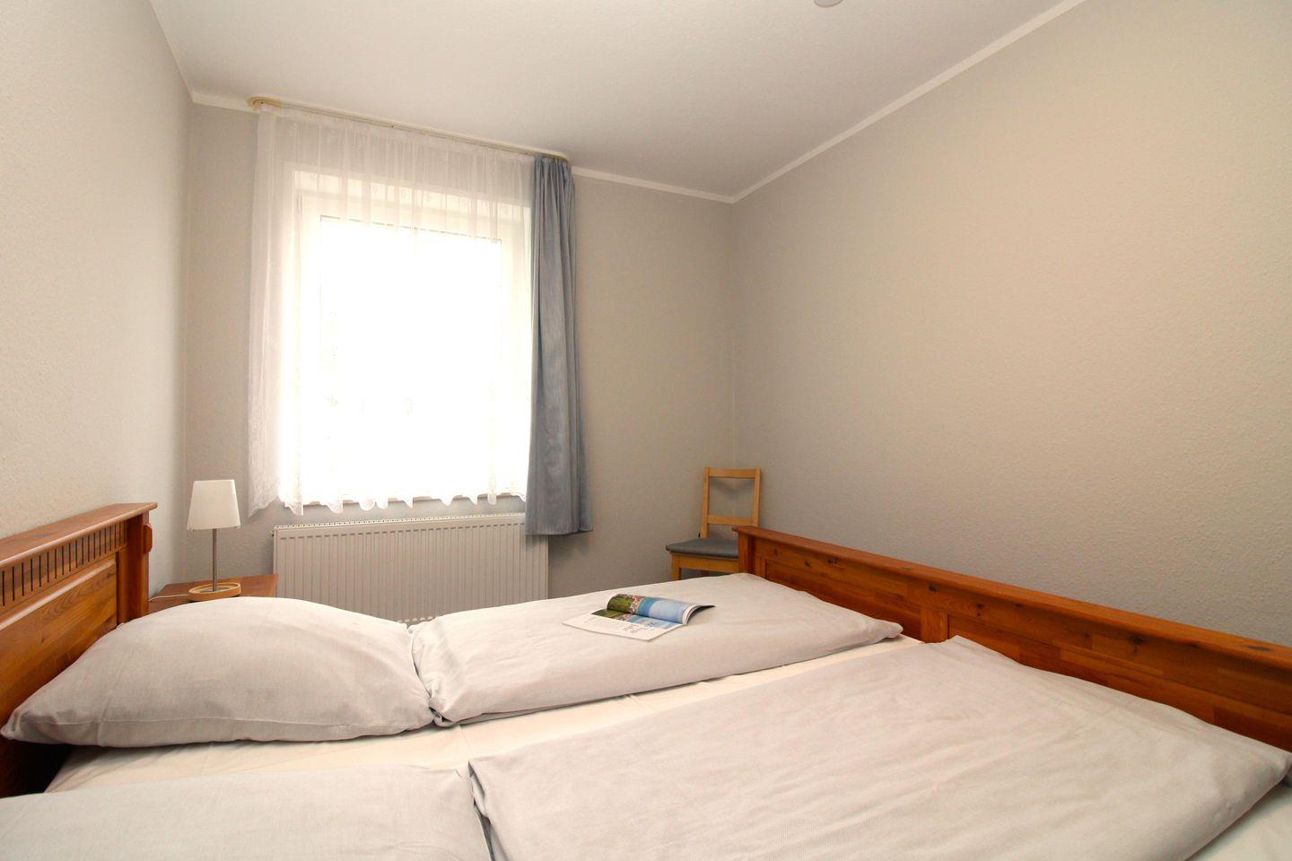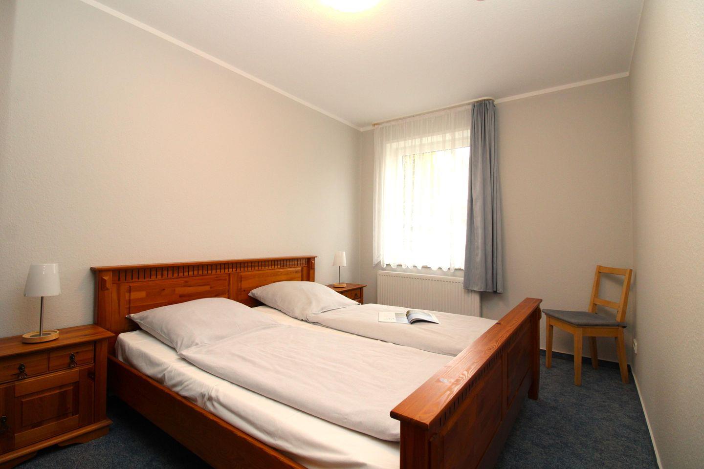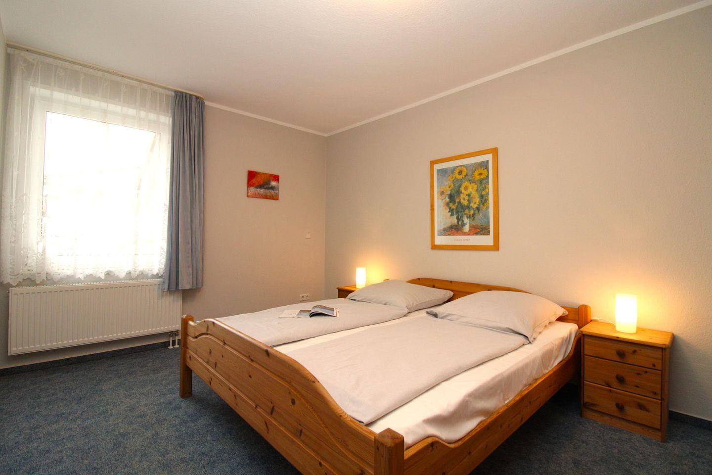 Das separate 2. Schlafzimmer verfügt ebenfalls über ein bequemes Doppelbett mit Nachttischen sowie einen geräumigen Kleiderschrank.