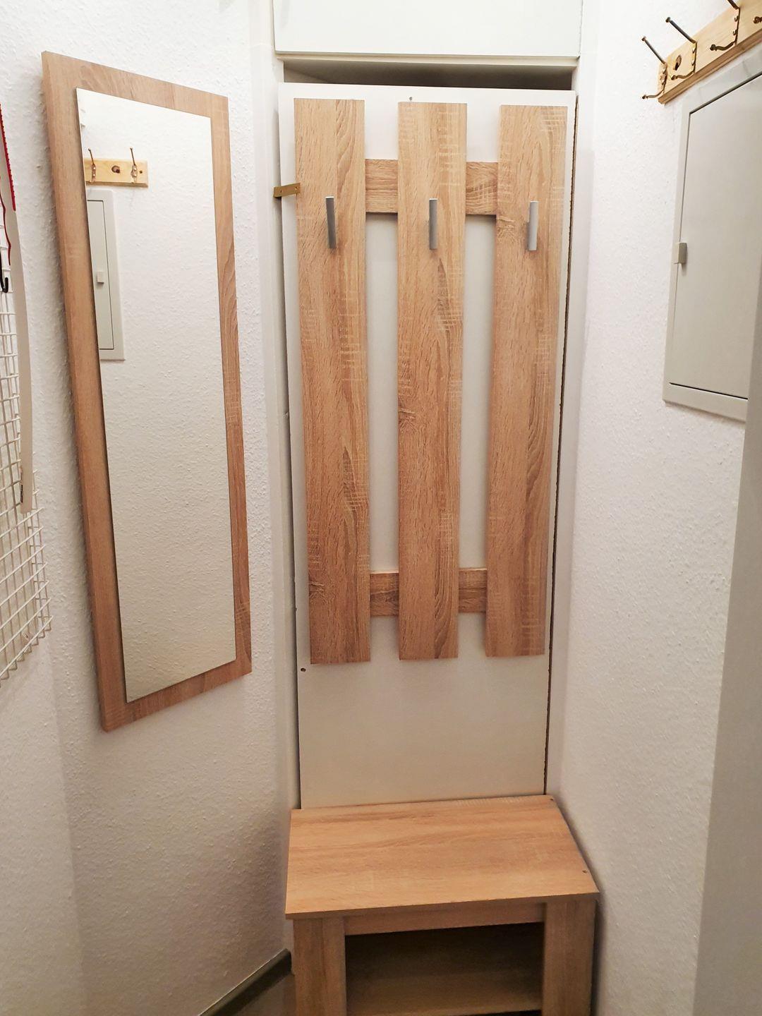 Darüber hinaus gehört noch ein kleiner Abstellraum mit Garderobe, Spiegel und kleinem Schuhschrank zur Wohnung – hier können Sie auch Ihre Koffer und sonstiges Gepäck abstellen.