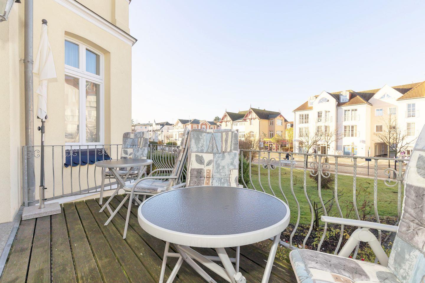 Die Wohnung verfügt über einen - nach Westen (Abendsonne!) ausgerichteten - schönen Balkon (ca. 8 m²), den Sie vom Schlafzimmer aus erreichen. Hier sitzen Sie entspannt und können bei einer guten Flasche Wein die lauen Sommernächte genießen!