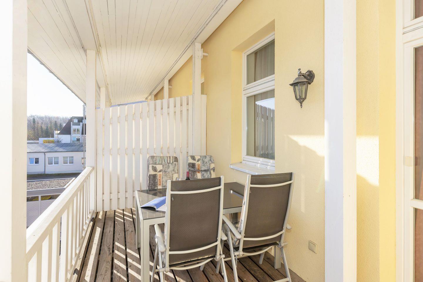 Die Wohnung verfügt über einen nach Osten (Morgensonne!) und teilweise nach Süden ausgerichteten großen und überdachten Balkon (ca. 10 m²), den Sie vom Wohnzimmer und vom Schlafzimmer aus erreichen. Hier sitzen Sie entspannt und können bei einer guten Flasche Wein die lauen Sommernächte genießen!