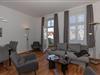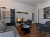 Das geräumige und helle Wohn-/Esszimmer ist mit einer separaten Sitzgruppe mit einer bequemen (und ausziehbaren Schlaf-) Couch, Couchtisch und 3 Sesseln, einem separaten Esstisch mit Stühlen sowie einer modernen Anbauwand eingerichtet.