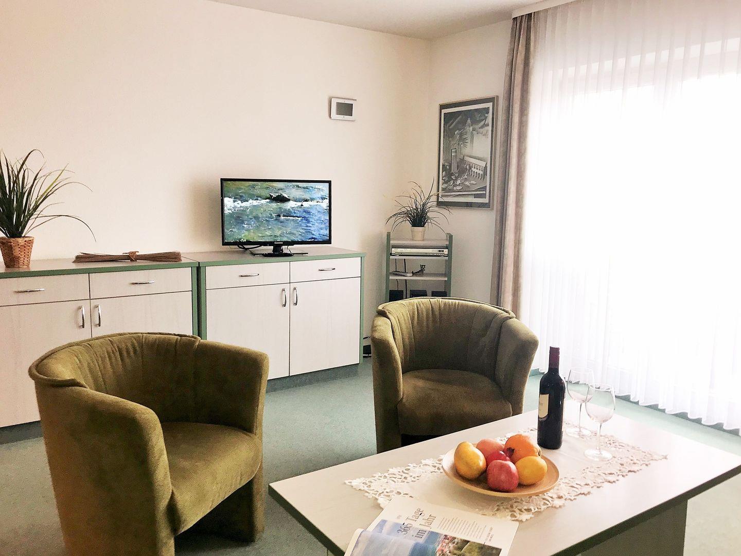 Zu Ihrer Unterhaltung stehen Ihnen in der Ferienwohnung ein modernes Flachbildschirm-TV-Gerät, Stereo-Anlage mit Radio und CD-Player sowie ein DVD-Player zur Verfügung. Darüber hinaus verfügt die Wohnung über kostenfreies WLAN (ohne Gewähr - gem. unseren AGB erfolgt keine Haftung bei eventuellen Störungen). Eine Grundausstattung an Spielen (Brett-, Gesellschafts- und Kartenspiele) ist ebenfalls vorhanden.