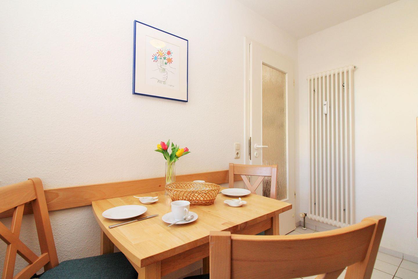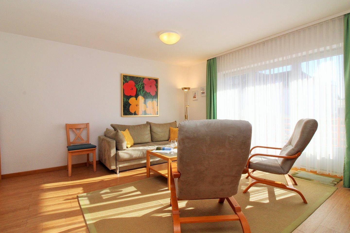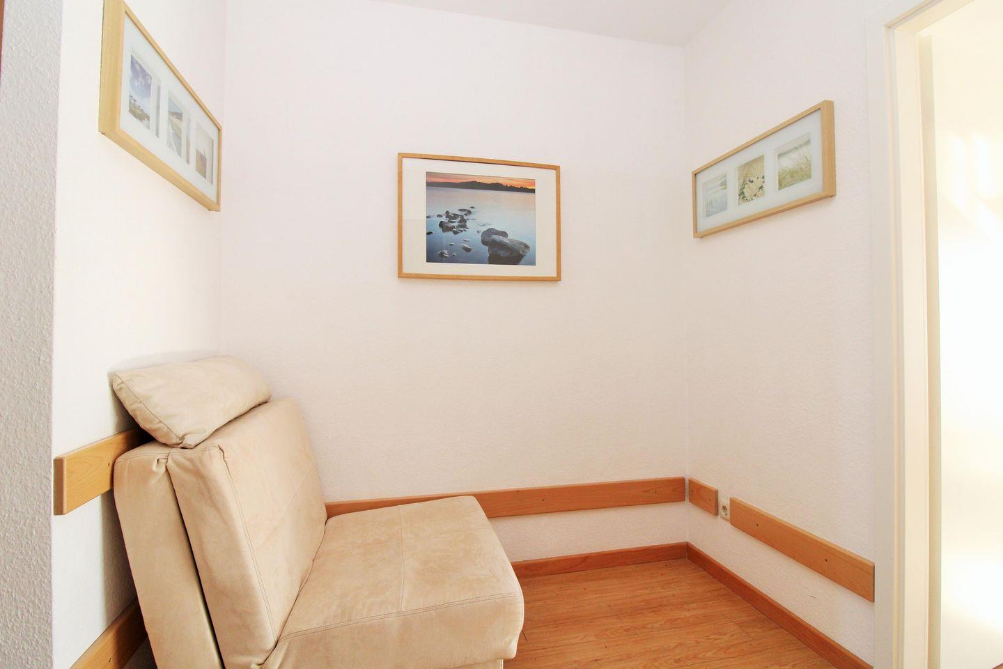 Die sehr strandnahe und schöne 1-Zimmer-Wohnung (ca. 46 m²) im 1. Obergeschoss besitzt ein hohes Maß an Funktionalität und ist komplett eingerichtet. Der Bodenbelag im Wohn-/Schlafzimmer ist moderner Vinyl-Design-Belag, der Eingangsbereich, die Küche sowie das Bad / WC sind gefliest.