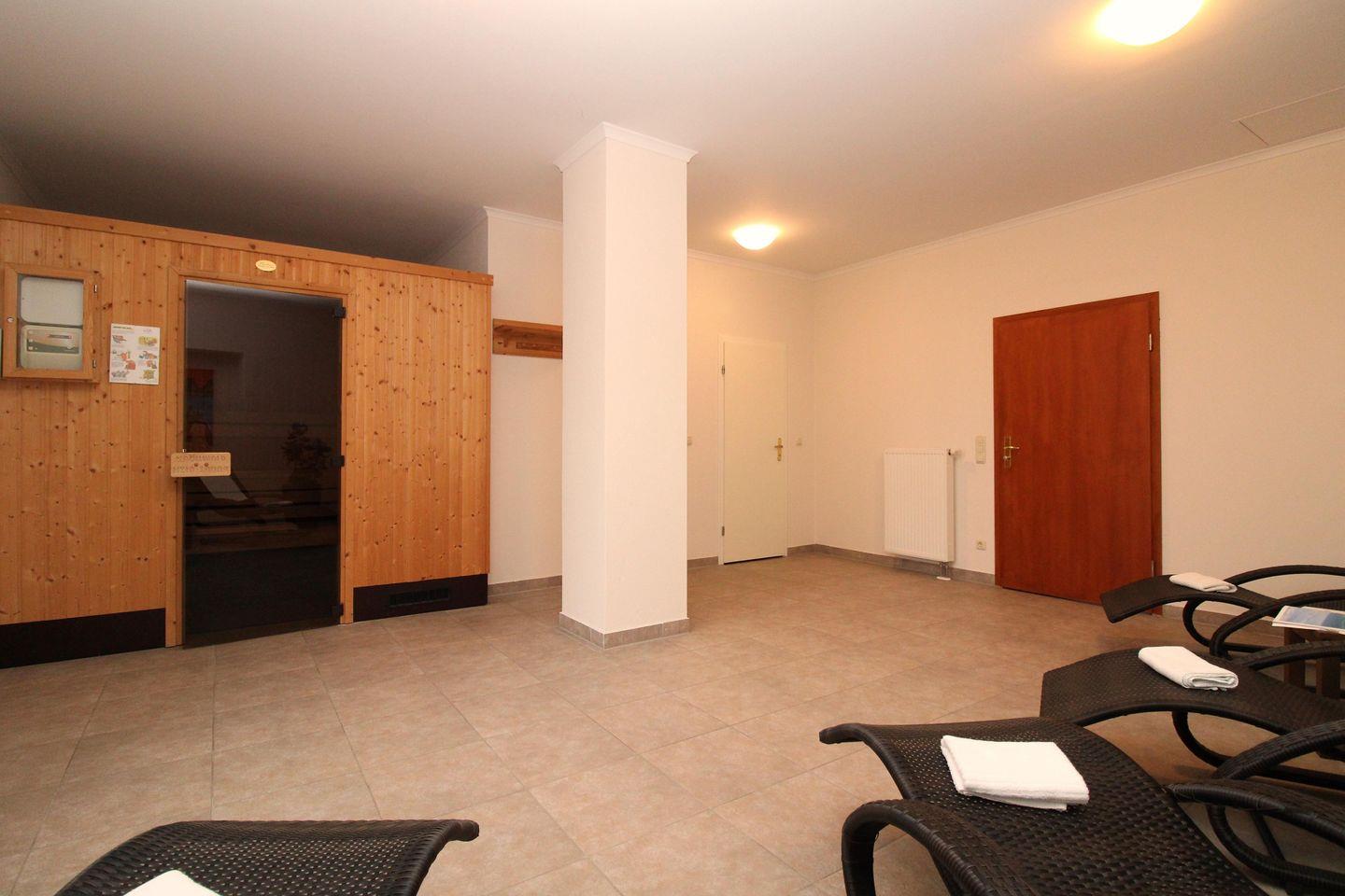 Weiterhin steht Ihnen im Erdgeschoss der Wohnanlage gegen Münzeinwurf eine Sauna-Anlage zur Verfügung.