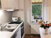 Die separate Küche (mit Durchreiche zum Wohn-/Esszimmer) beinhaltet eine voll ausgestattete Einbauküchenzeile mit 4-Platten-Ceran-Kochfeld, Backofen, Dunstabzug, Mikrowelle, Kühlschrank mit Gefrierfach, Geschirrspülmaschine, Kaffeemaschine, Wasserkocher und Toaster. Die Küche ist mit Geschirr, Gläsern, Besteck und Töpfen bestens und ausreichend ausgestattet.