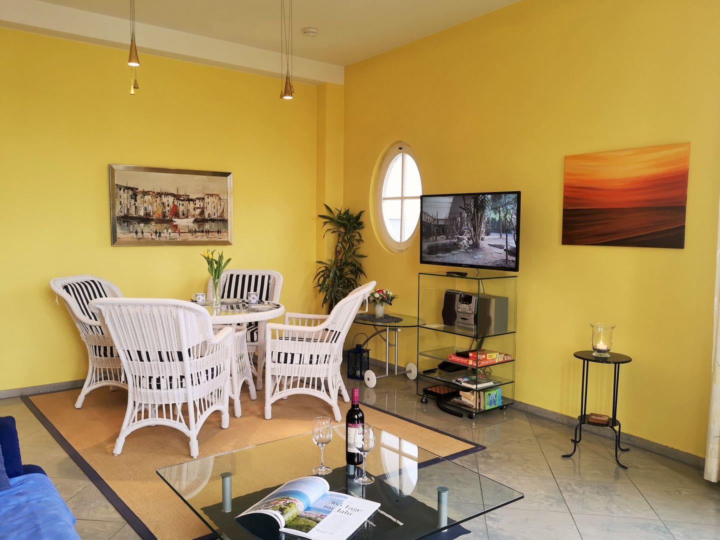 Zu Ihrer Unterhaltung stehen Ihnen in der Ferienwohnung 2 moderne Flachbild-TV-Geräte sowie eine Stereo-Anlage mit Radio und CD-Player zur Verfügung. Darüber hinaus verfügt die Wohnung über kostenfreies WLAN (ohne Gewähr - gem. unseren AGB erfolgt keine Haftung bei eventuellen Störungen).