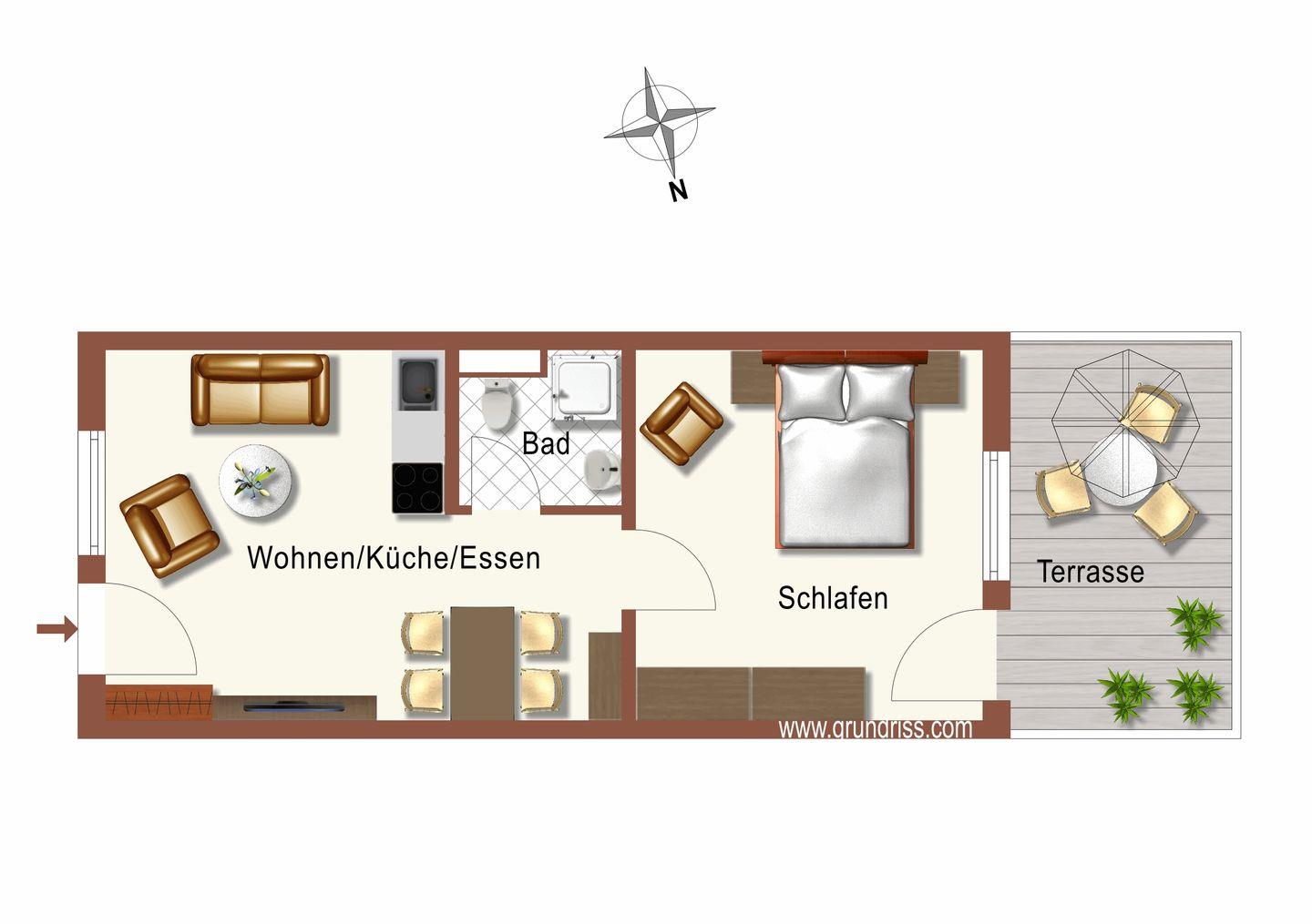 • für 2 Personen / ca. 34 m² / Terrasse