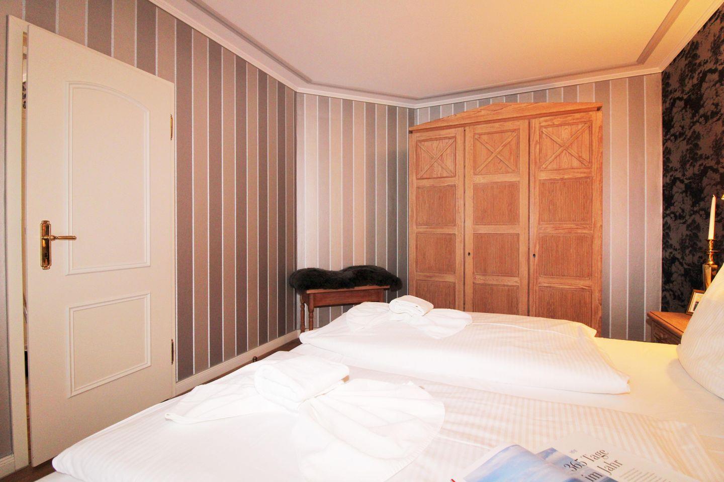 Das gemütliche Schlafzimmer ist mit einem bequemen Doppelbett, Nachttischen, einem geräumigen Kleiderschrank sowie einem Radiogerät (mit CD-Player) eingerichtet.