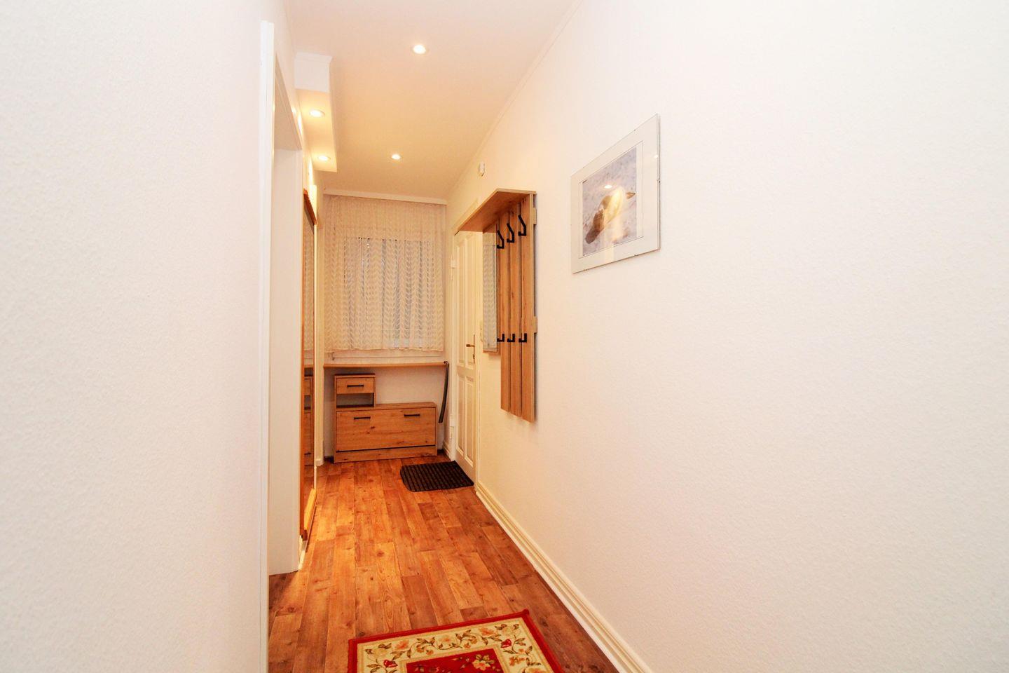 Vom geräumigen Flur mit Garderobe, Spiegel und Sideboard erreichen Sie bequem alle Räume Ihrer Ferienwohnung.