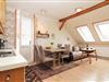 Die offene Küche beinhaltet eine voll ausgestattete Einbauküchenzeile mit 4-Platten-Ceran-Kochfeld, Backofen, Mikrowelle, Geschirrspülmaschine, Kühlschrank mit Gefrierfach, Kaffeemaschine, Wasserkocher und Toaster. Die Küche ist mit Geschirr, Gläsern, Besteck und Töpfen vollständig ausgestattet.