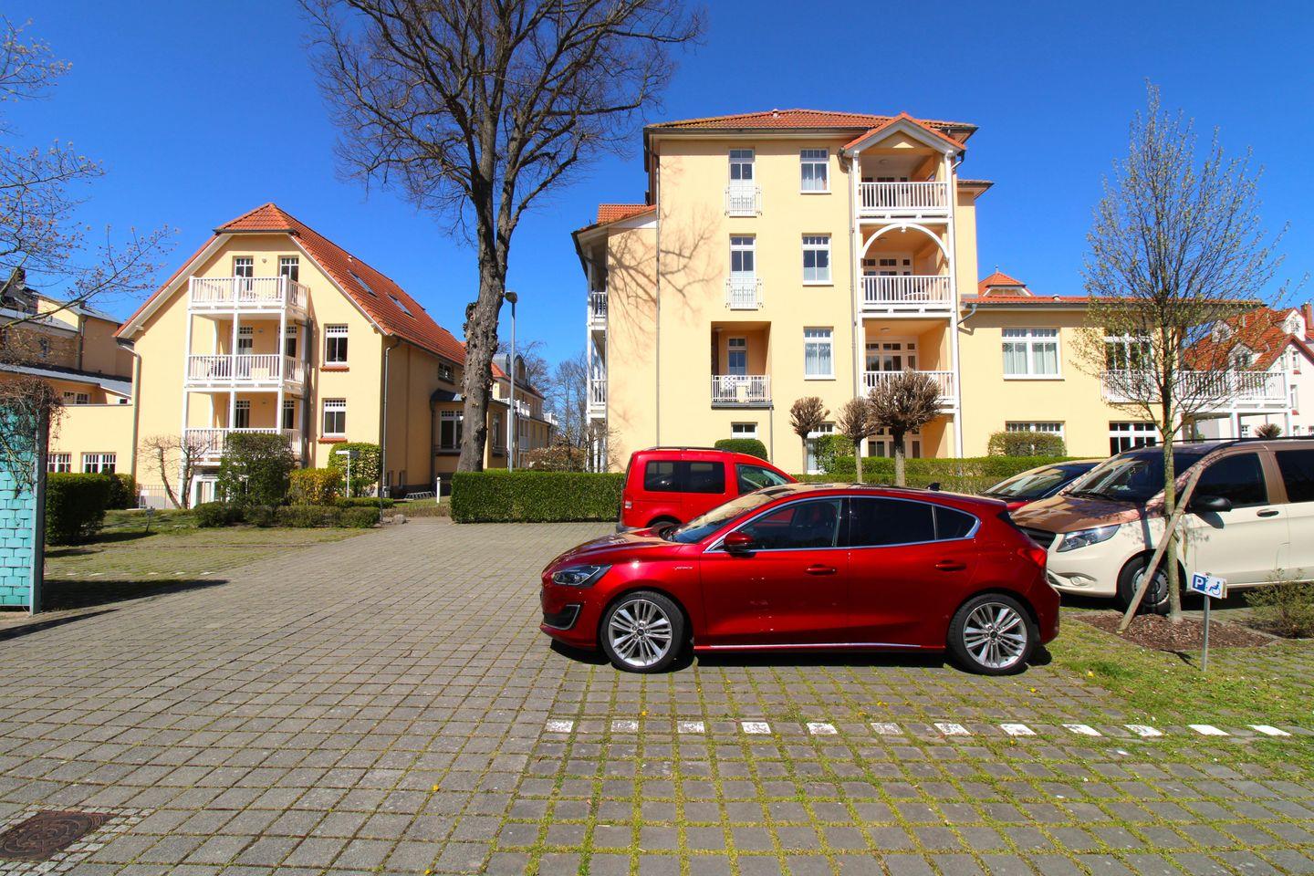 Ihr Auto können Sie kostenfrei auf einem zu Ihrer Wohnung gehörenden PKW-Stellplatz direkt neben dem Haus parken, Ihre Fahrräder können in dem Fahrradkeller der Wohnanlage untergestellt werden. Sofern Sie keine eigenen Fahrräder mitbringen, können Sie diese bei Interesse bei einem Fahrradverleih in unmittelbarer Nähe Ihrer Wohnanlage mieten.