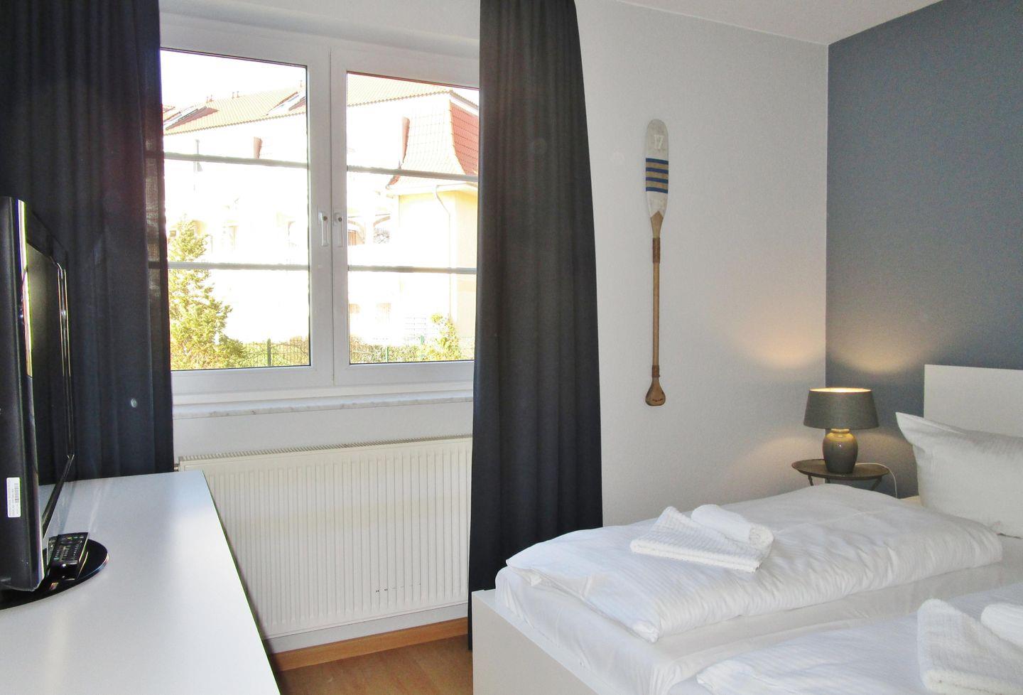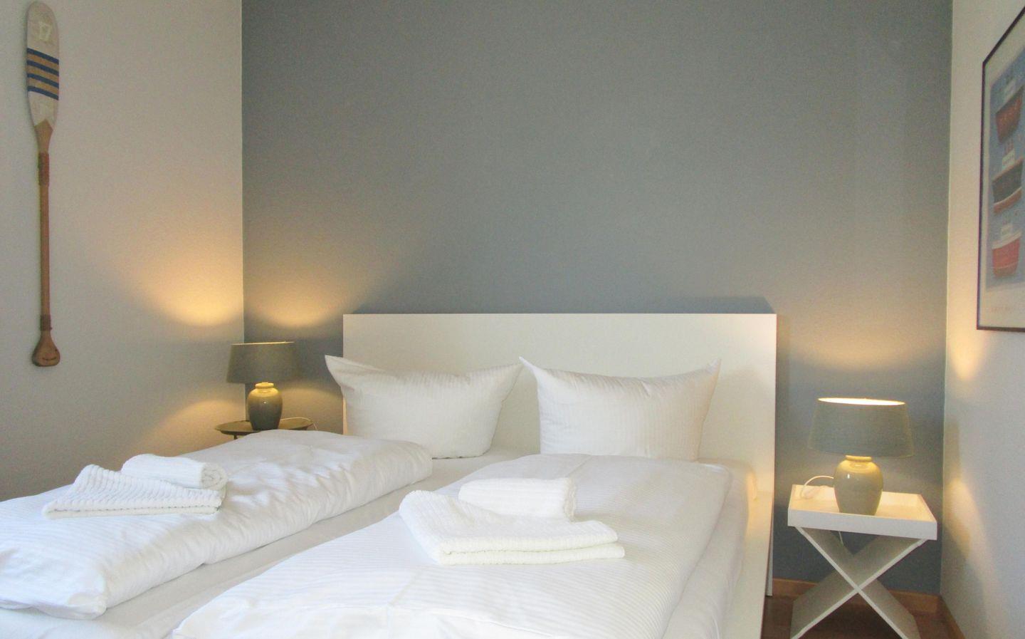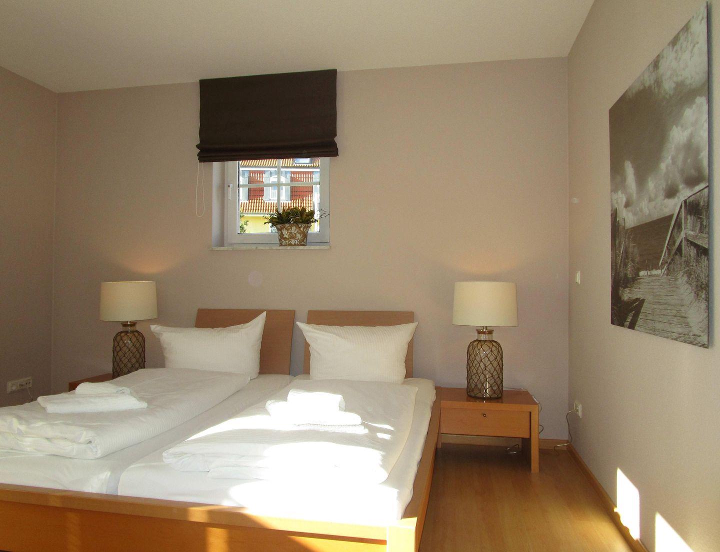 Das freundliche, helle und zusätzliche 2. Schlafzimmer verfügt ebenfalls über ein bequemes Doppelbett (mit 1,60 m Breite), Nachttische sowie eine geräumige Kommode. Hier steht Ihnen noch ein zusätzliches TV-Gerät zur Verfügung.