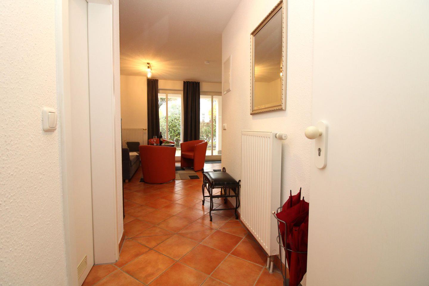 Die moderne und sehr geschmackvoll eingerichtete 3-Zimmer-Wohnung (ca. 58 m²) im Erdgeschoss besitzt ein hohes Maß an Funktionalität und ist komplett eingerichtet. Der Bodenbelag in den beiden Schlafzimmern ist Holzlaminat, der Eingangsbereich, der Wohn- bzw. Küchenbereich und das Bad / WC sind gefliest.