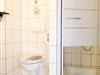 Das Badezimmer verfügt über eine Dusche, Waschbecken und WC, einen Föhn sowie ausreichend Ablagemöglichkeiten.